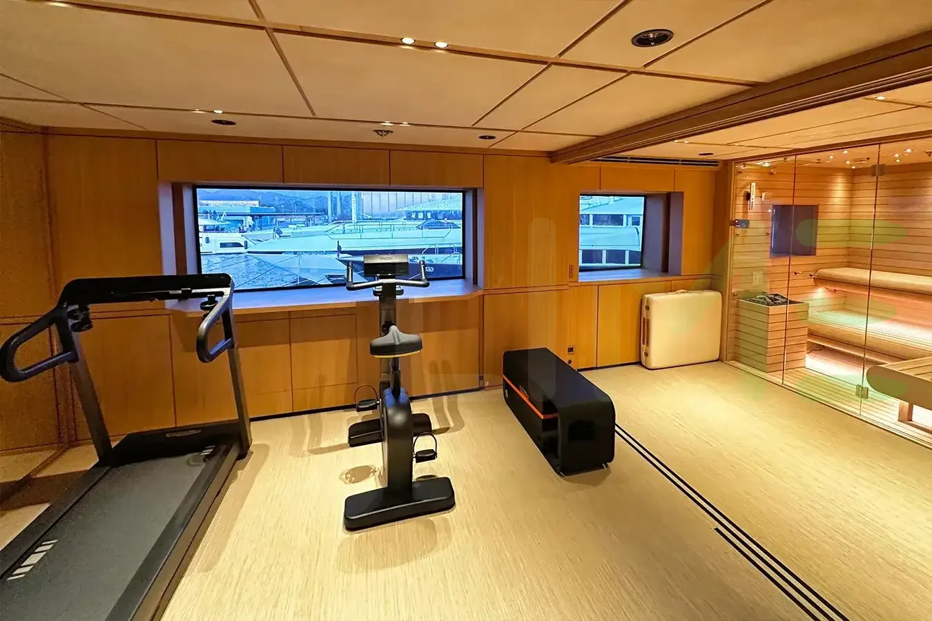 Her features include sauna, gym, WiFi and air conditioning.