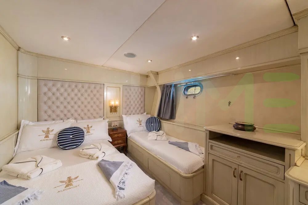 Up to 10 guests can be accommodated on board the yacht ALKONOST in 5 staterooms. ALKONOST also includes accommodations for 5 crew members, including the yacht’s captain. Whether you envision private escapes or unforgettable voyages, you're invited to discover a world where elegance meets adventure.
