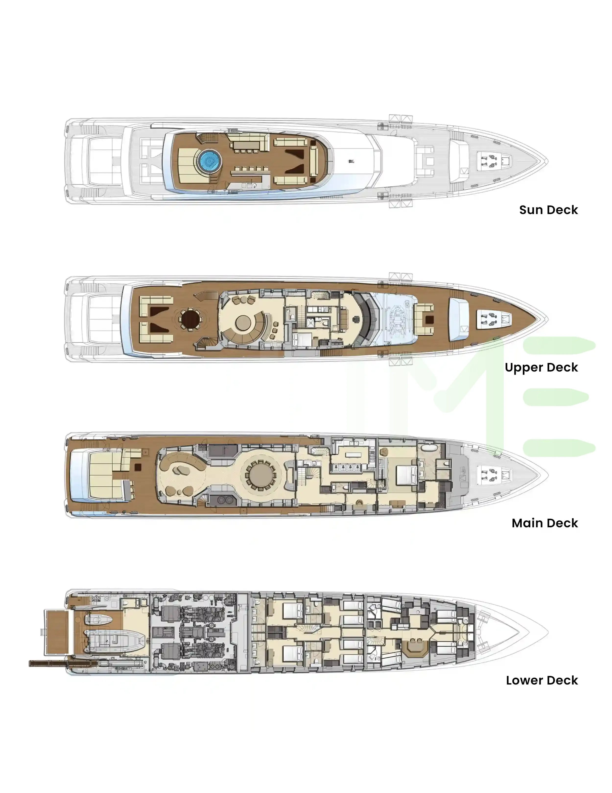 Request plans that include the layout of staterooms, guest areas, and outdoor spaces, as well as crew quarters and work areas.
