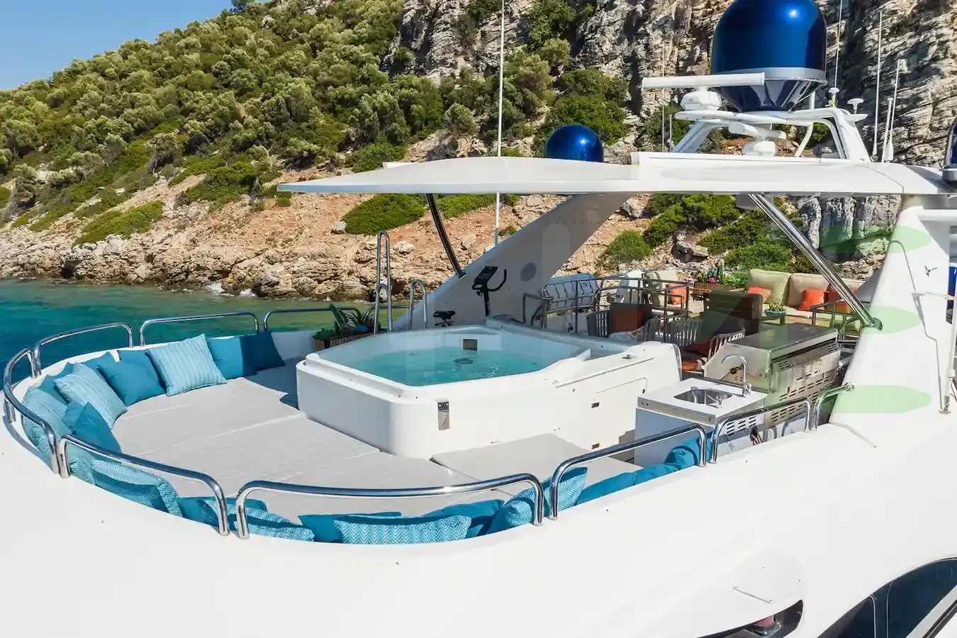 A charter on Amadea is comfortable and convenient thanks to the provided amenities, particularly a deck jacuzzi, perfect to enjoy the scenery with your favourite drink in hand.