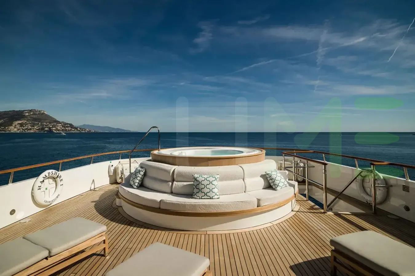Her features include underwater lights, gym, deck jacuzzi, WiFi and air conditioning.