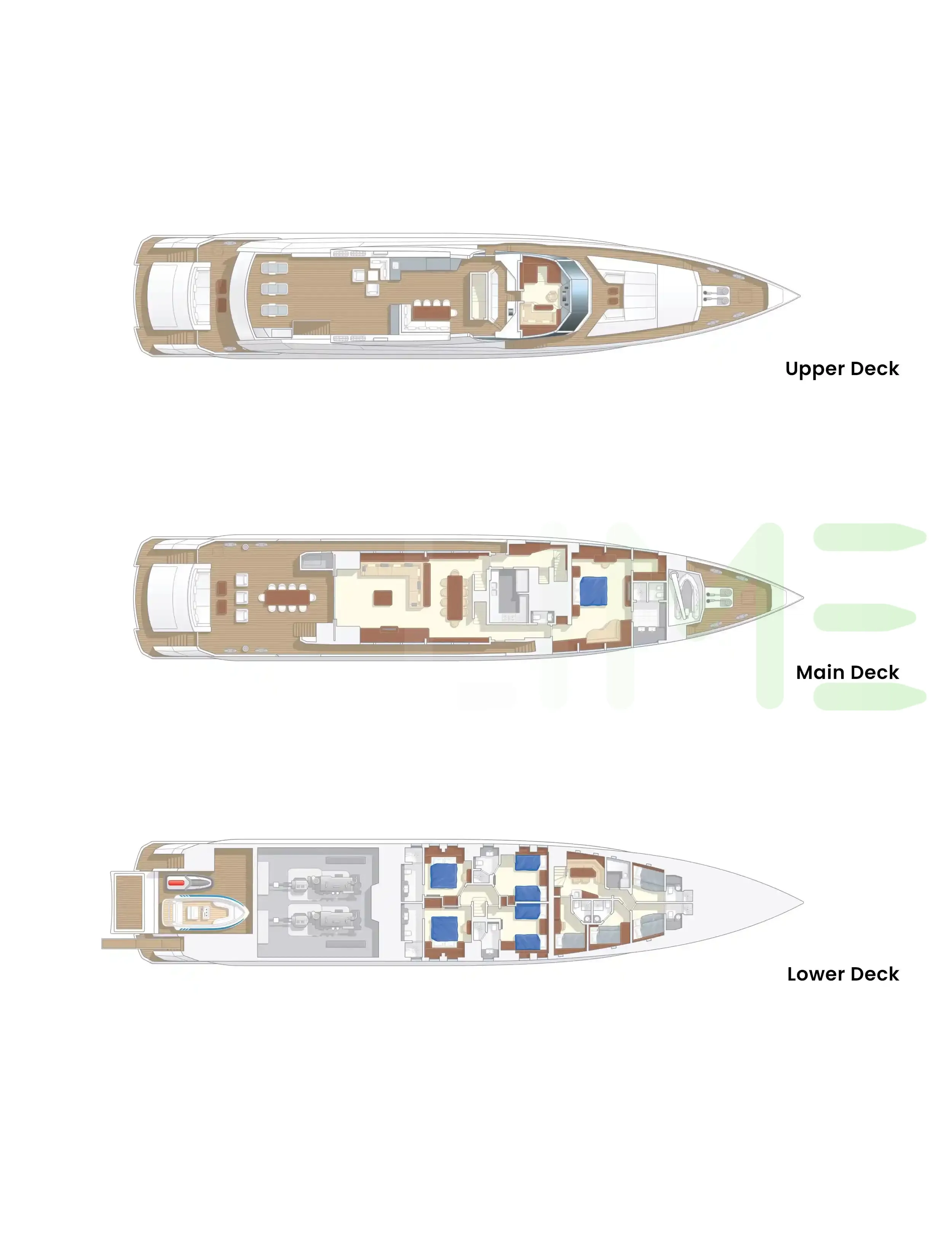 Request plans that include the layout of staterooms, guest areas, and outdoor spaces, as well as crew quarters and work areas.