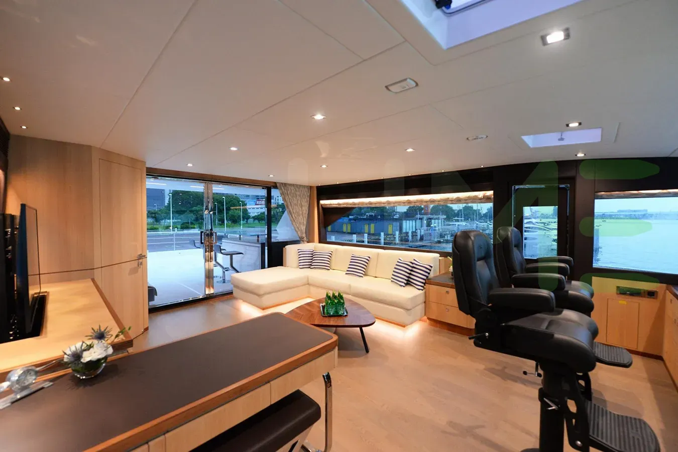 The AQUA LIFE yacht for sale is a 90-foot (27m) luxury motoryacht built in 2019 by yacht builder, Horizon, located in Taiwan. The styling of the AQUA LIFE yacht features exterior design by Cor D. Rover Design and interior design by Horizon Yachts.