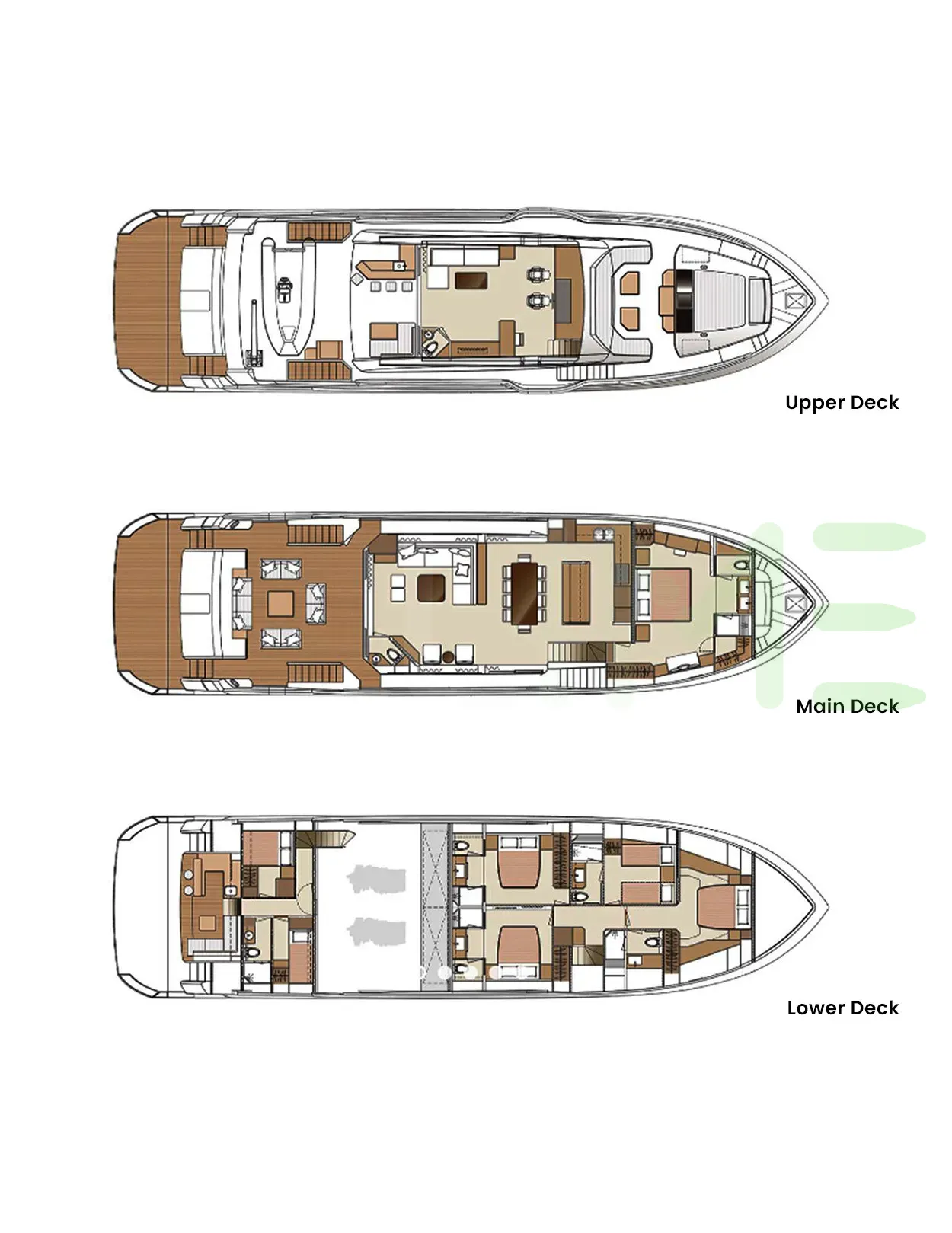Request plans that include the layout of staterooms, guest areas, and outdoor spaces, as well as crew quarters and work areas.
