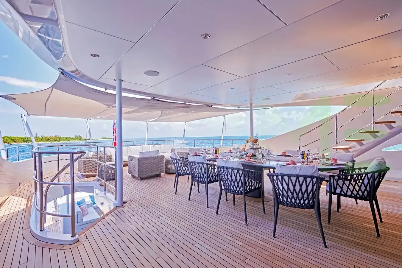 Up to 10 guests can be accommodated on board the yacht ARKADIA in 5 staterooms. ARKADIA also includes accommodations for 9 crew members, including the yacht’s captain. Whether you envision private escapes or unforgettable voyages, you're invited to discover a world where elegance meets adventure.