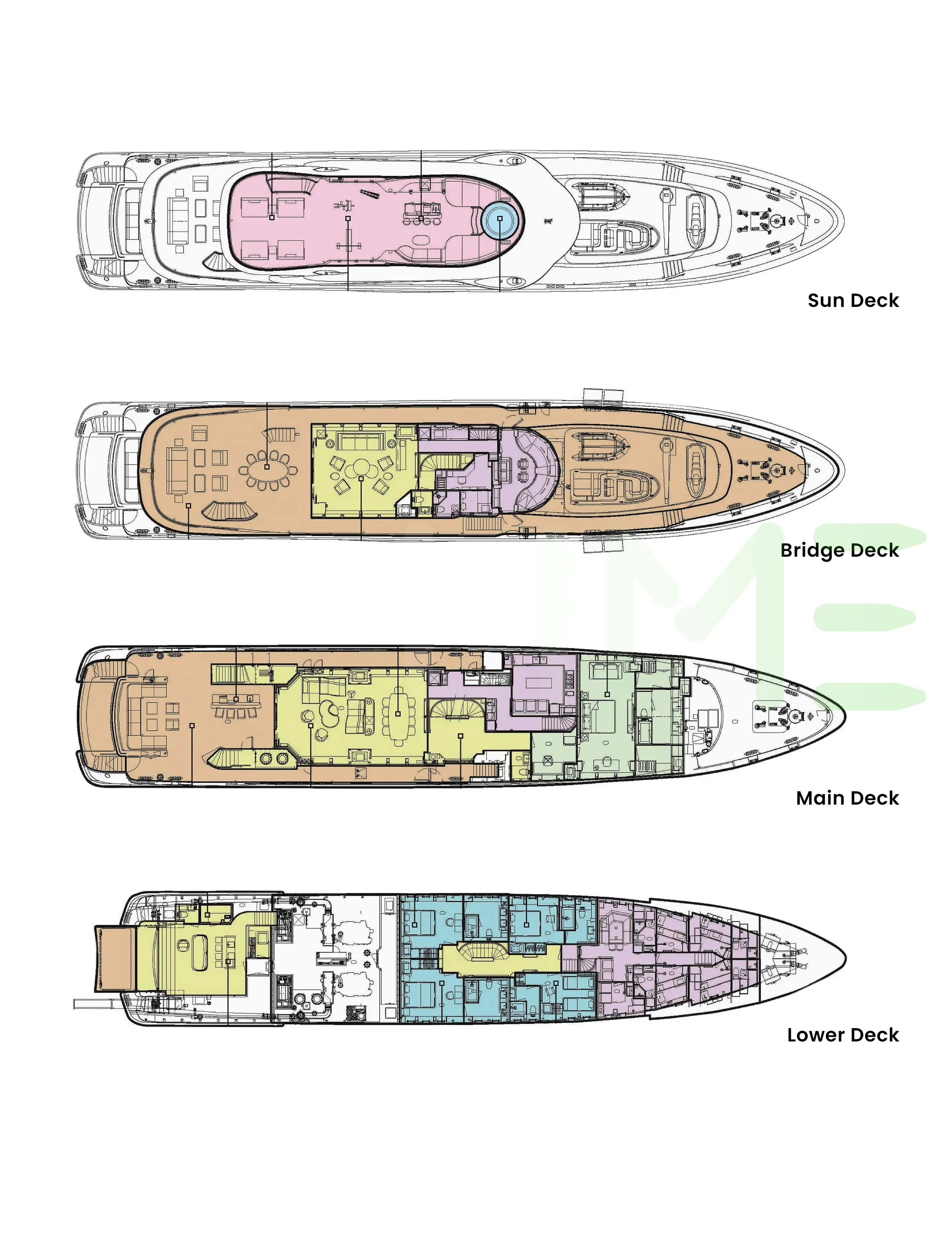 Request plans that include the layout of staterooms, guest areas, and outdoor spaces, as well as crew quarters and work areas.