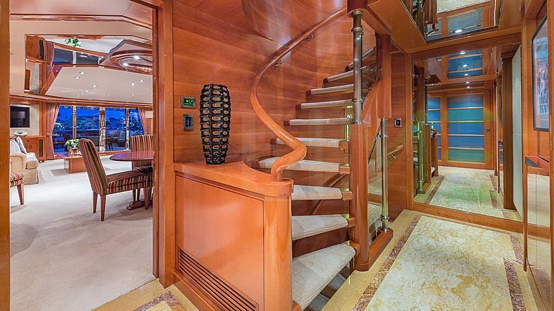 AS YOU WISH is a full-displacement oceangoing mono-hull motoryacht, with a beam of 30' 8" (9.34 meters), offering stability and comfort during blue water open ocean navigation, including near coastal and inland cruising. Her full-displacement hull shape and draft of 7' 10" (2.4 meters) further contribute to a yacht with a longer range, stowage, and a smooth sailing experience, making her ideal for extended journeys and global travel.