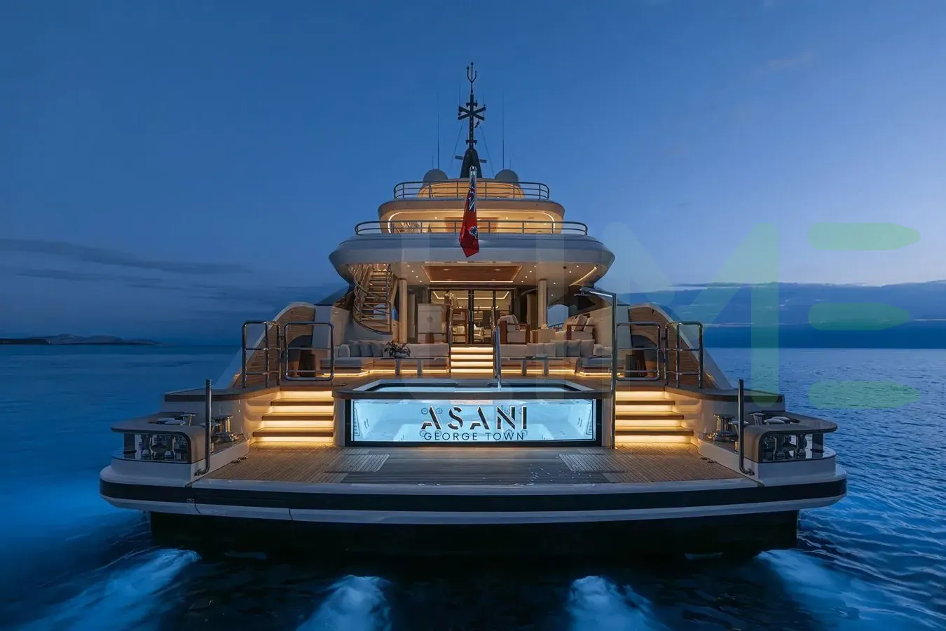 Vessels not for sale or charter on this website are for informational purposes only. If offered, ASANI may not be available to U.S. residents while in U.S. waters, or to EU residents while in EU waters, unless operating in a Foreign Trade Zone (FTZ) or under a boat show bond. Please consult your broker for details. ASANI yacht owner, broker, or captain, use the form below to report any changes to the status, images, or information of this vessel. Prices are converted into the selected currency for comparison purposes only; check current exchange rates to verify. This website strives to provide accurate information, but makes no guarantees regarding the ASANI condition or details. Media shown may not depict actual photos, or the most recent photos of ASANI off-market, and may include images from before refits or modifications. Please contact your yacht broker for the most up-to-date information. Presented courtesy of YDIQ, if available, ASANI may be centrally listed with another yacht brokerage and is offered through this broker/dealer for client convenience. It does not constitute a direct representation. Due to the dynamic nature of the yachting industry and the lack of a centralized global listing service for all charter yachts and yachts for sale, it is impossible to maintain a fully current view of the market. Yachts often change status, leave the market, are sold, or are renamed, making it challenging to confirm their availability for charter or sale at any time. While we utilize third-party services and make every effort to ensure accurate information, the appearance of a listing on this website should not replace official documentation provided by a yacht’s authorized representatives. The ASANI off-market, if offered, may be sold, subject to price changes, or withdrawn from the market without notice.