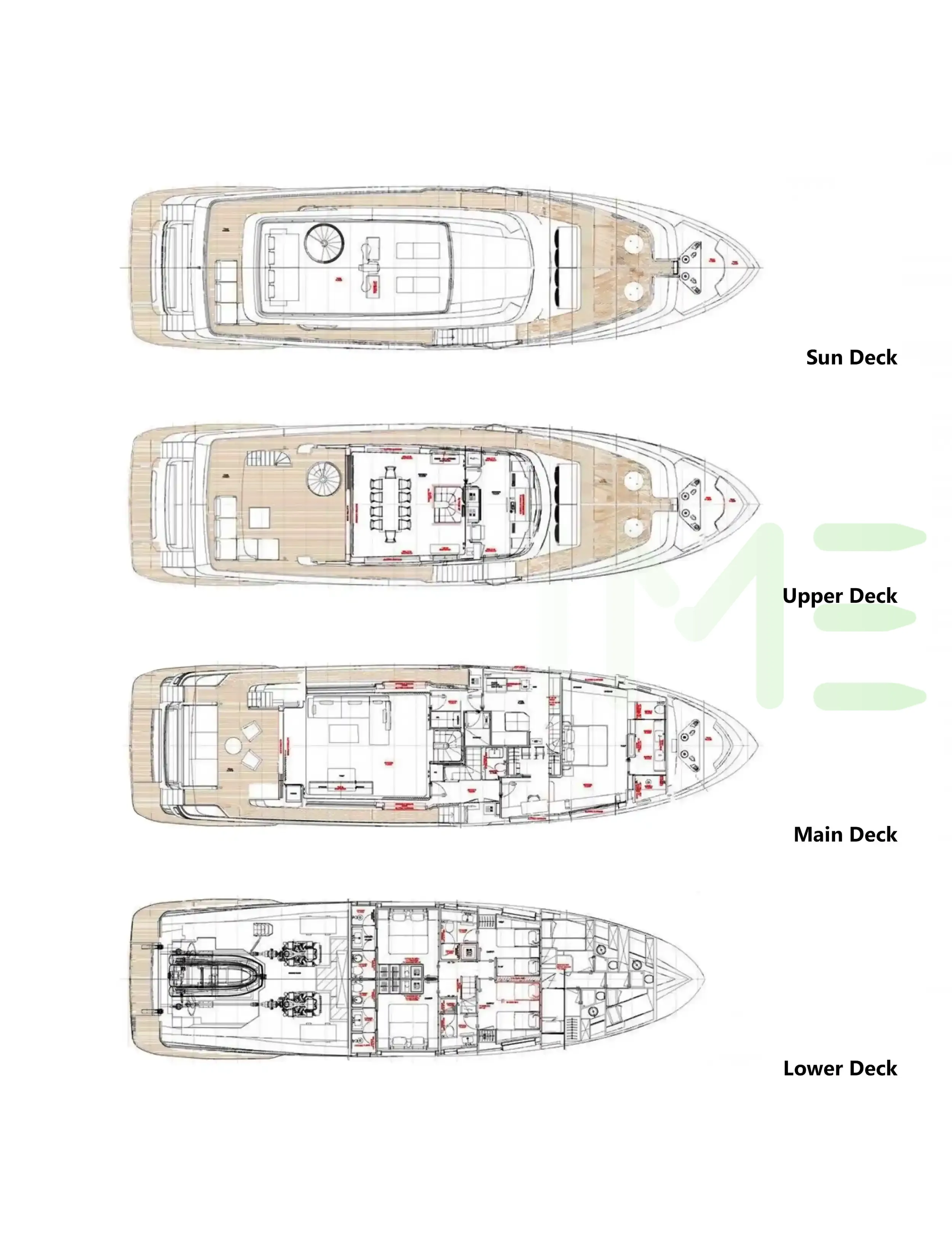 Request plans that include the layout of staterooms, guest areas, and outdoor spaces, as well as crew quarters and work areas.