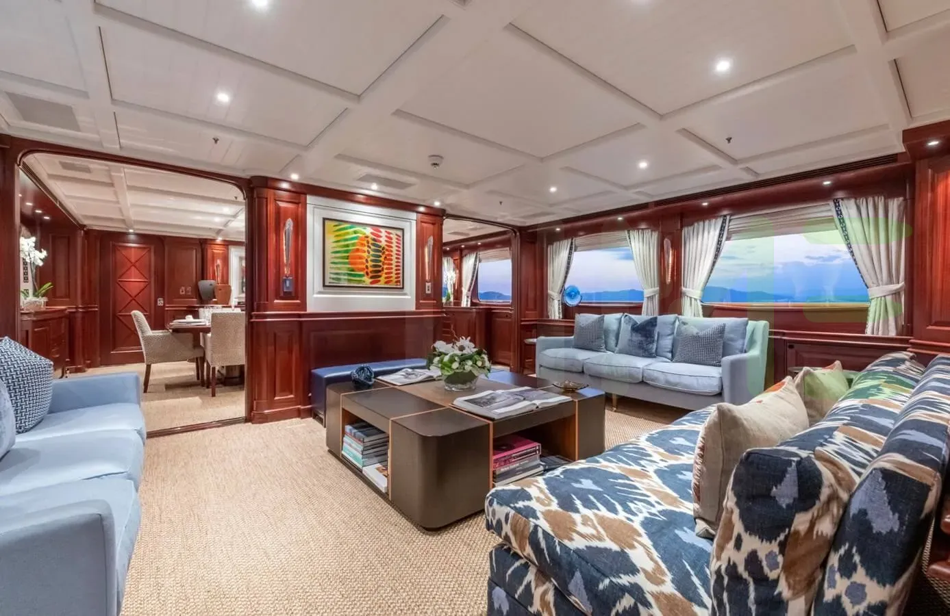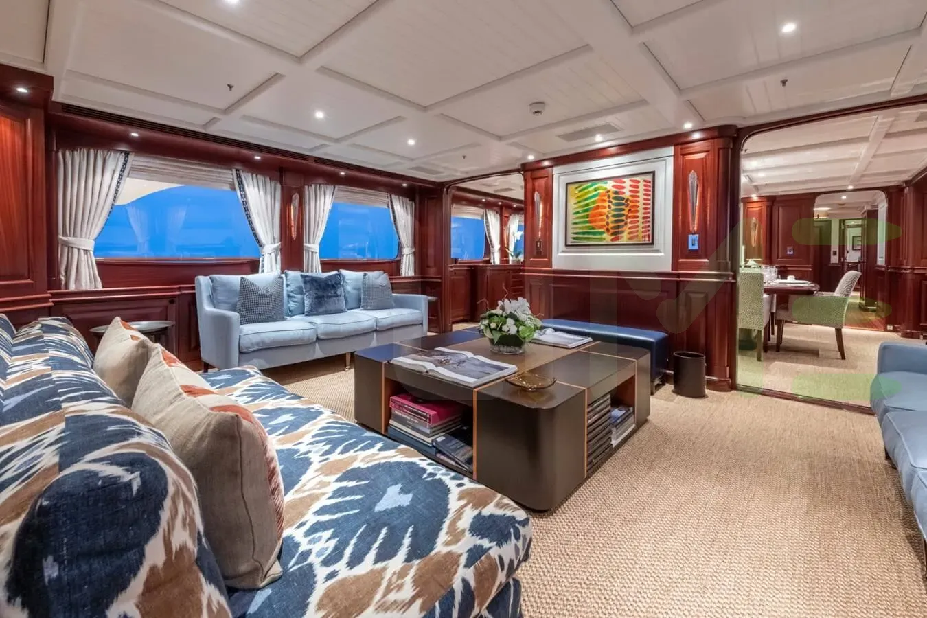 Enhanced by her steel full-displacement hull, and aluminium superstructure, a higher level of seaworthiness and comfort for those on board the AWATEA yacht for sale has been achieved. The visual appeal of the exterior is complimented by the rich color and distinctive grain patterns of teak decks that lend an air of sophistication to the yacht's appearance.