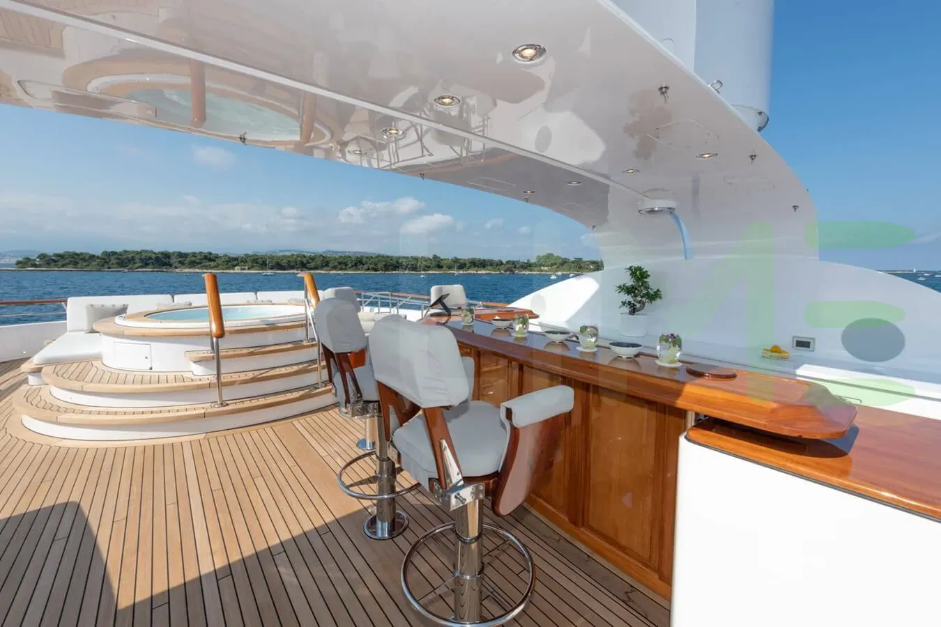 Her features include sauna, beach club, deck jacuzzi, WiFi and air conditioning.