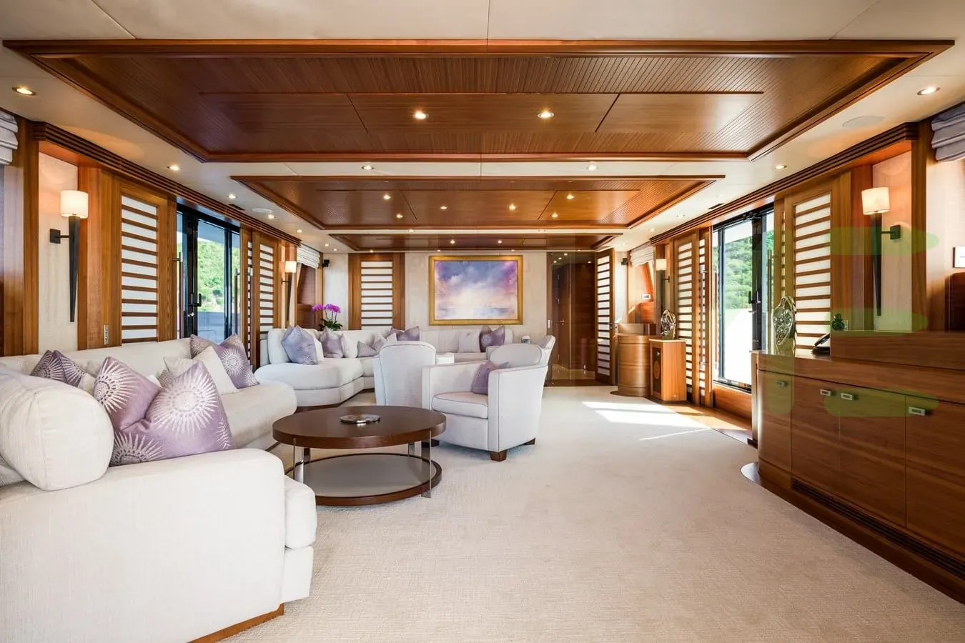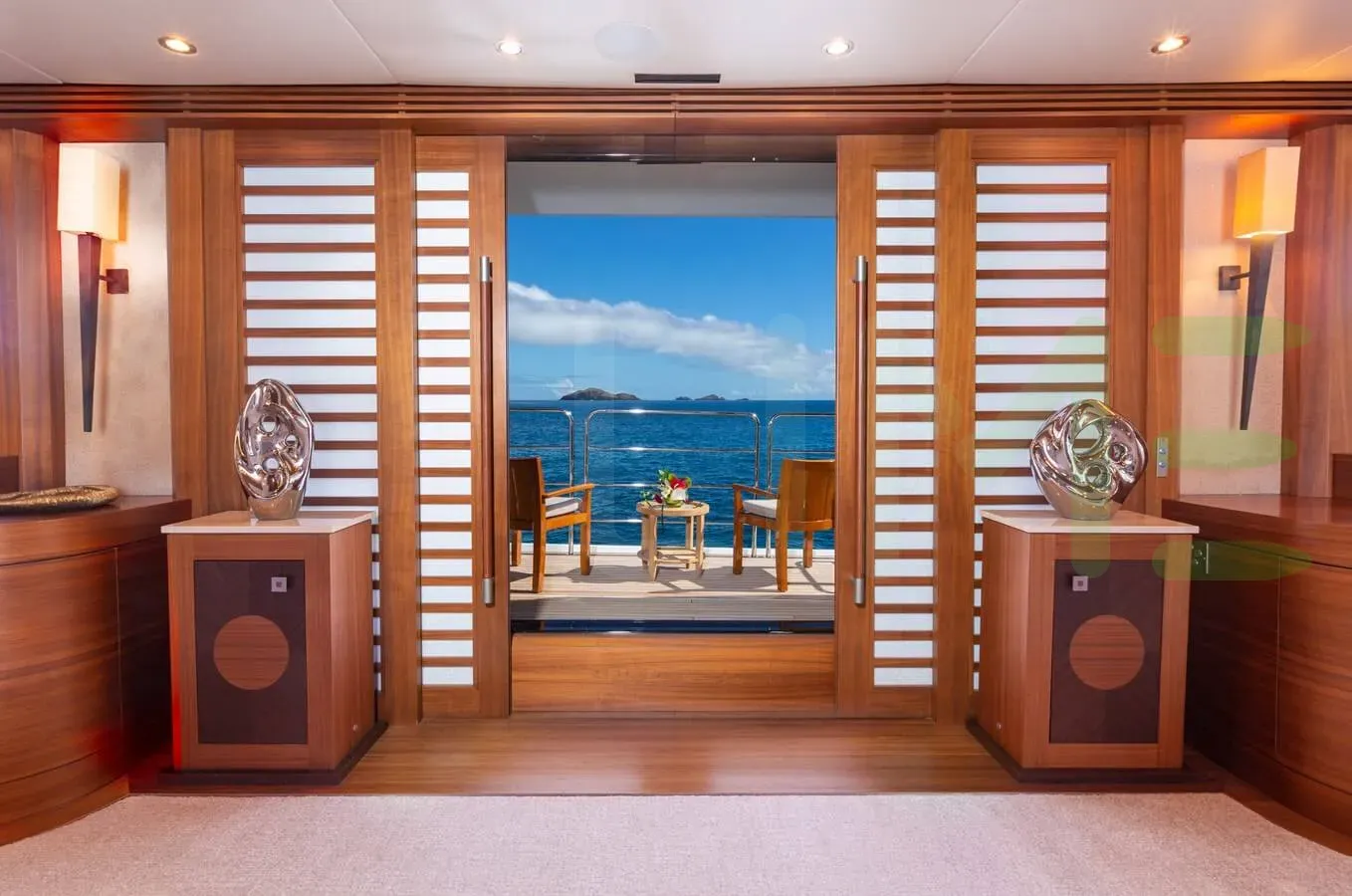 - Side balconies create a peaceful setting to enjoy at anchor