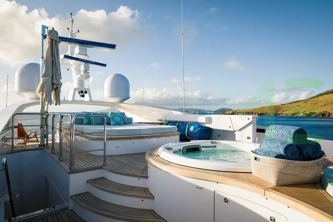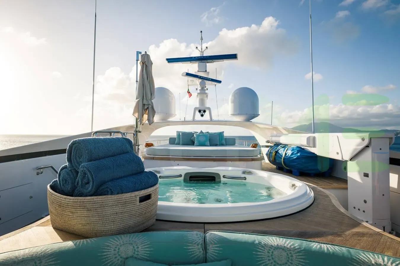 - With a bar, sofa seating, large jacuzzi and sunpads, the sundeck represents a great use of space