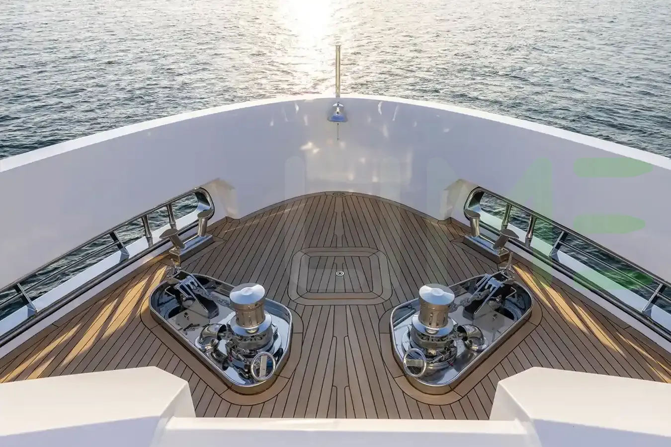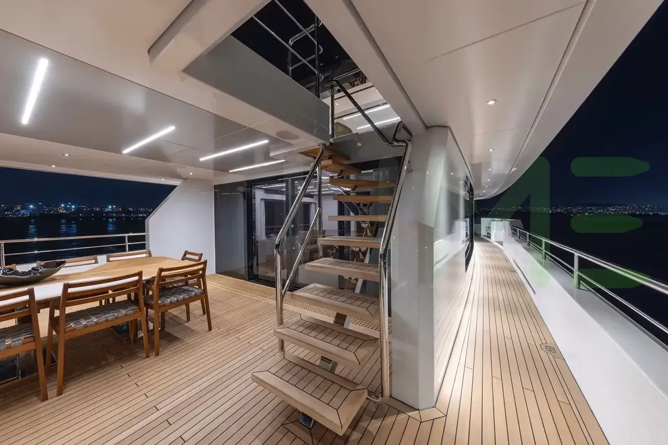 Enhanced by her steel full-displacement hull, and aluminium superstructure, a higher level of seaworthiness and comfort for those on board the BEE yacht for sale has been achieved. The visual appeal of the exterior is complimented by the rich color and distinctive grain patterns of teak decks that lend an air of sophistication to the yacht's appearance.