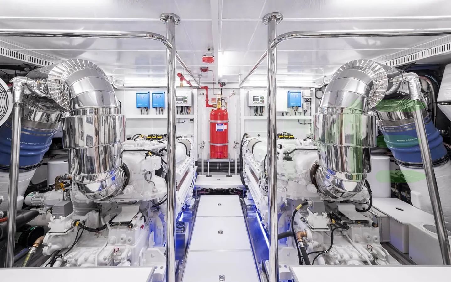 Powered by two Caterpillar main engines, each generating 651 horsepower, for a total combined output of 1,302 horsepower. Notably, the BELLA TU yacht is one of 2,673 yachts greater than 65’(19m) with Caterpillar engines.