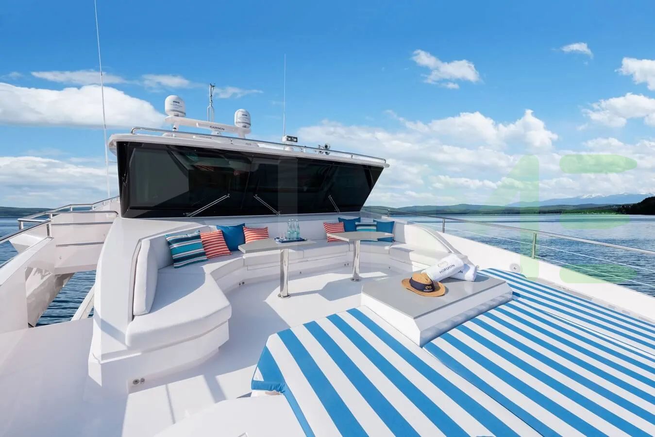 The BELLA TU yacht for sale is a 90-foot (27m) luxury motoryacht renewed in 2023, and built in 2019 by yacht builder, Horizon, located in Taiwan. The styling of the BELLA TU yacht features exterior design by Cor D. Rover Design and interior design by Horizon Yachts.