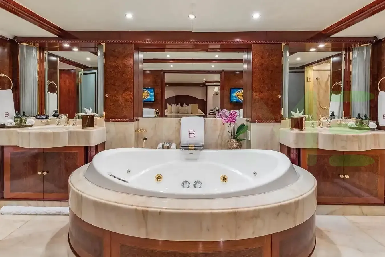 Her features include a gym, deck jacuzzi, WiFi and air conditioning.