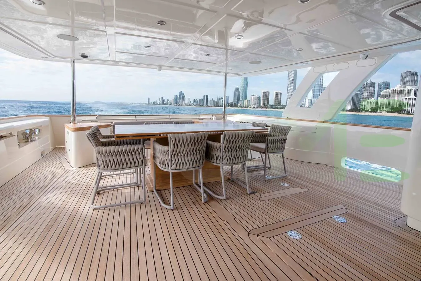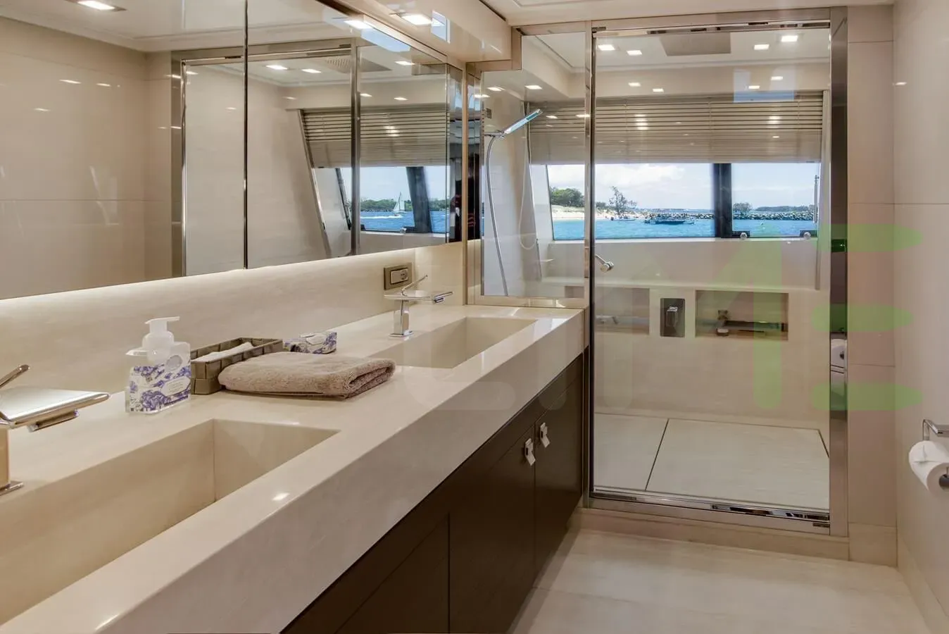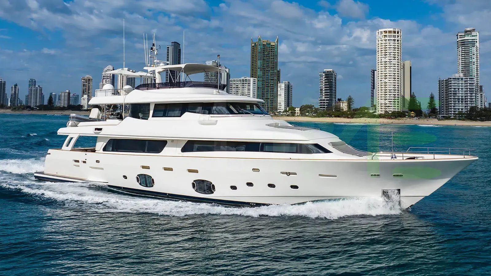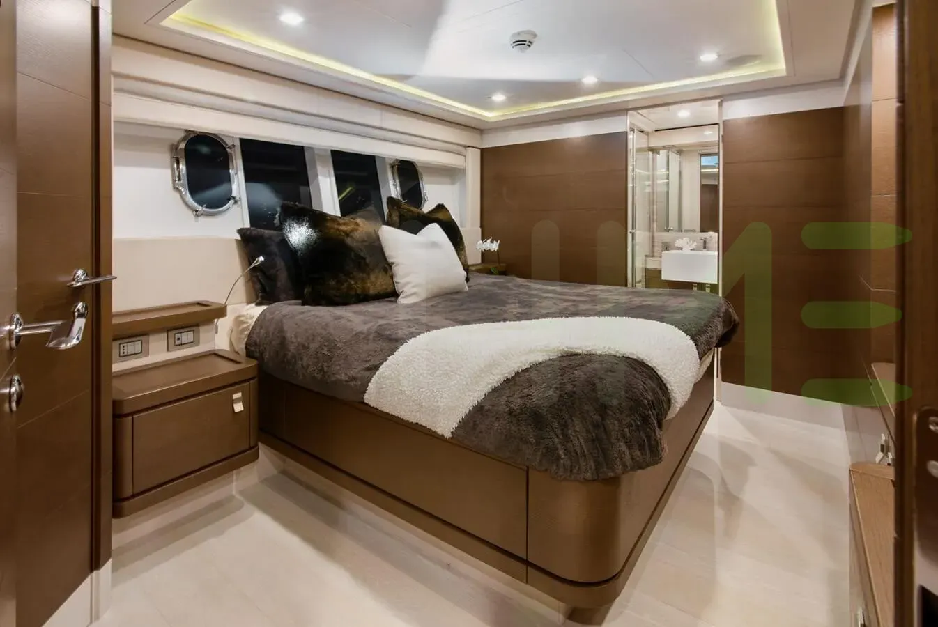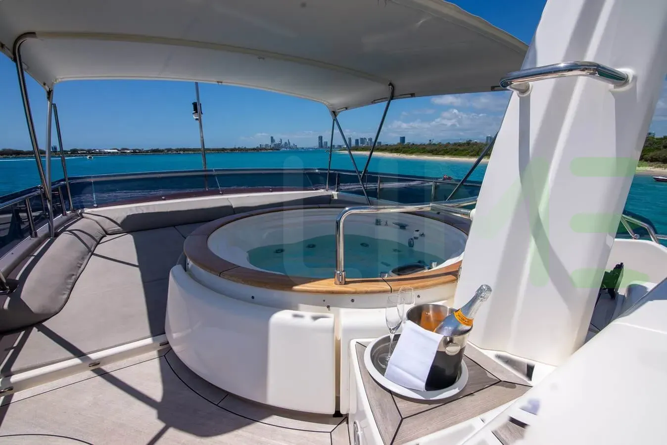 Her features include underwater lights, deck jacuzzi, WiFi and air conditioning.