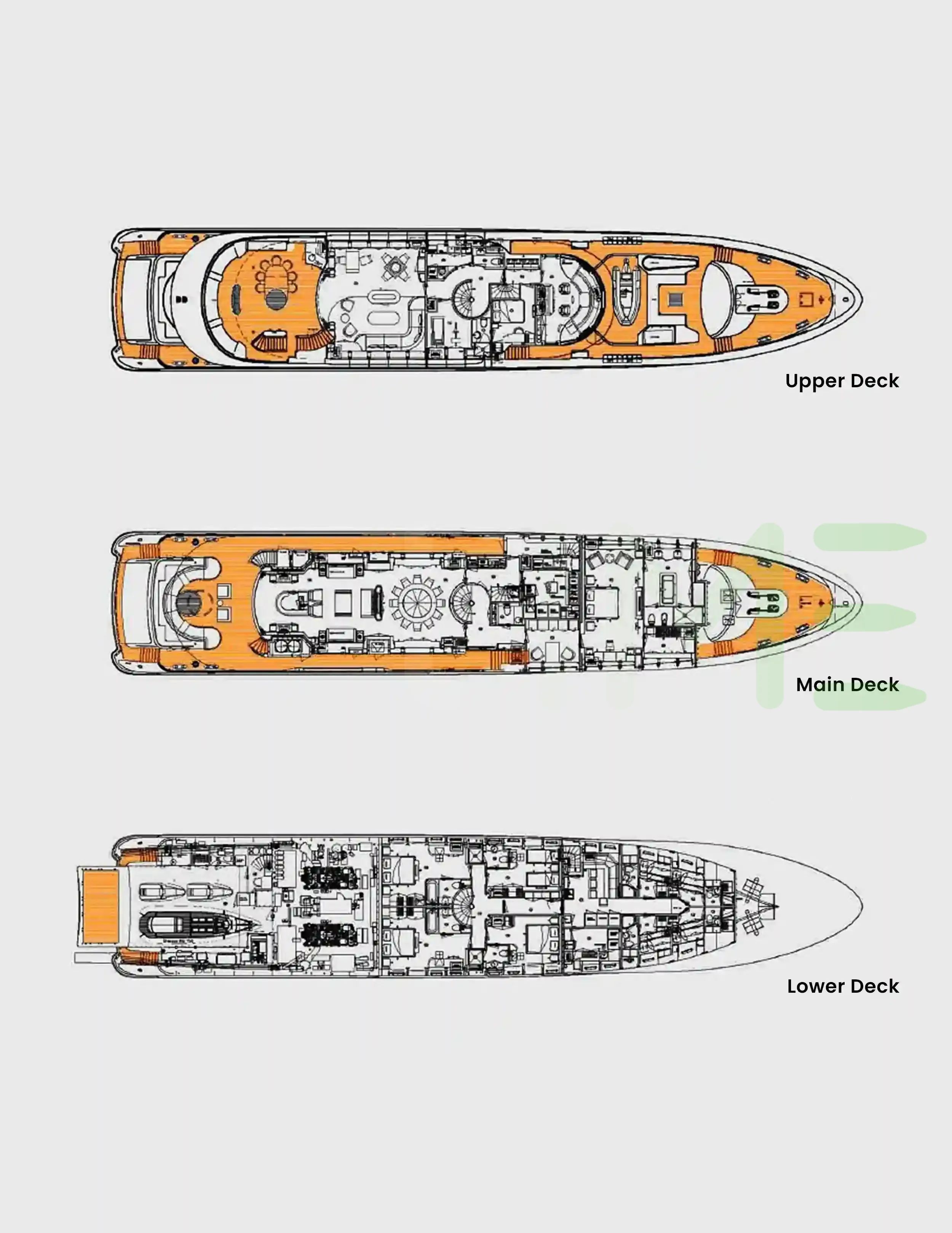 Request plans that include the layout of staterooms, guest areas, and outdoor spaces, as well as crew quarters and work areas.
