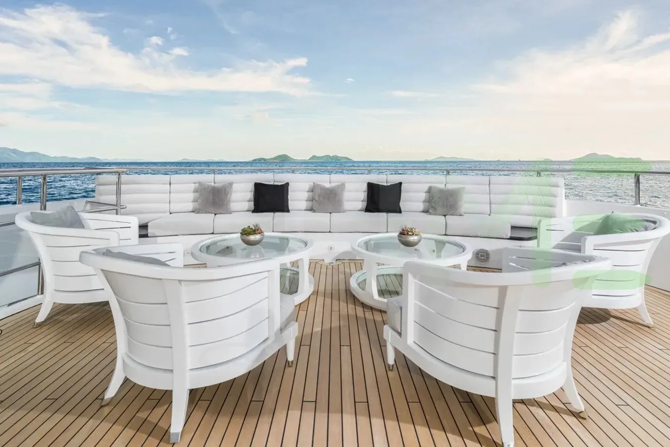 Keeping comfortable and entertained on Bliss is easy thanks to the available amenities such as a sauna to help you detox and regenerate. Even the most discerning of charter guests will enjoy the included beach club or elsewhere, maintain your fitness routine and work out in the well-equipped gym. Retreat to the deck jacuzzi and soak up the scenery.