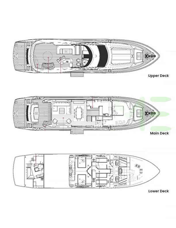 Request plans that include the layout of staterooms, guest areas, and outdoor spaces, as well as crew quarters and work areas.