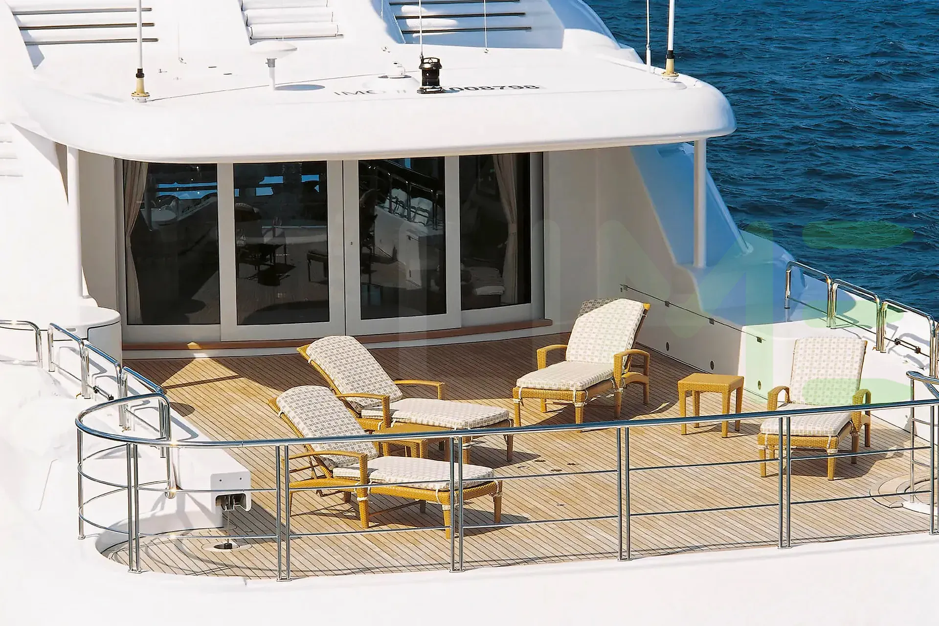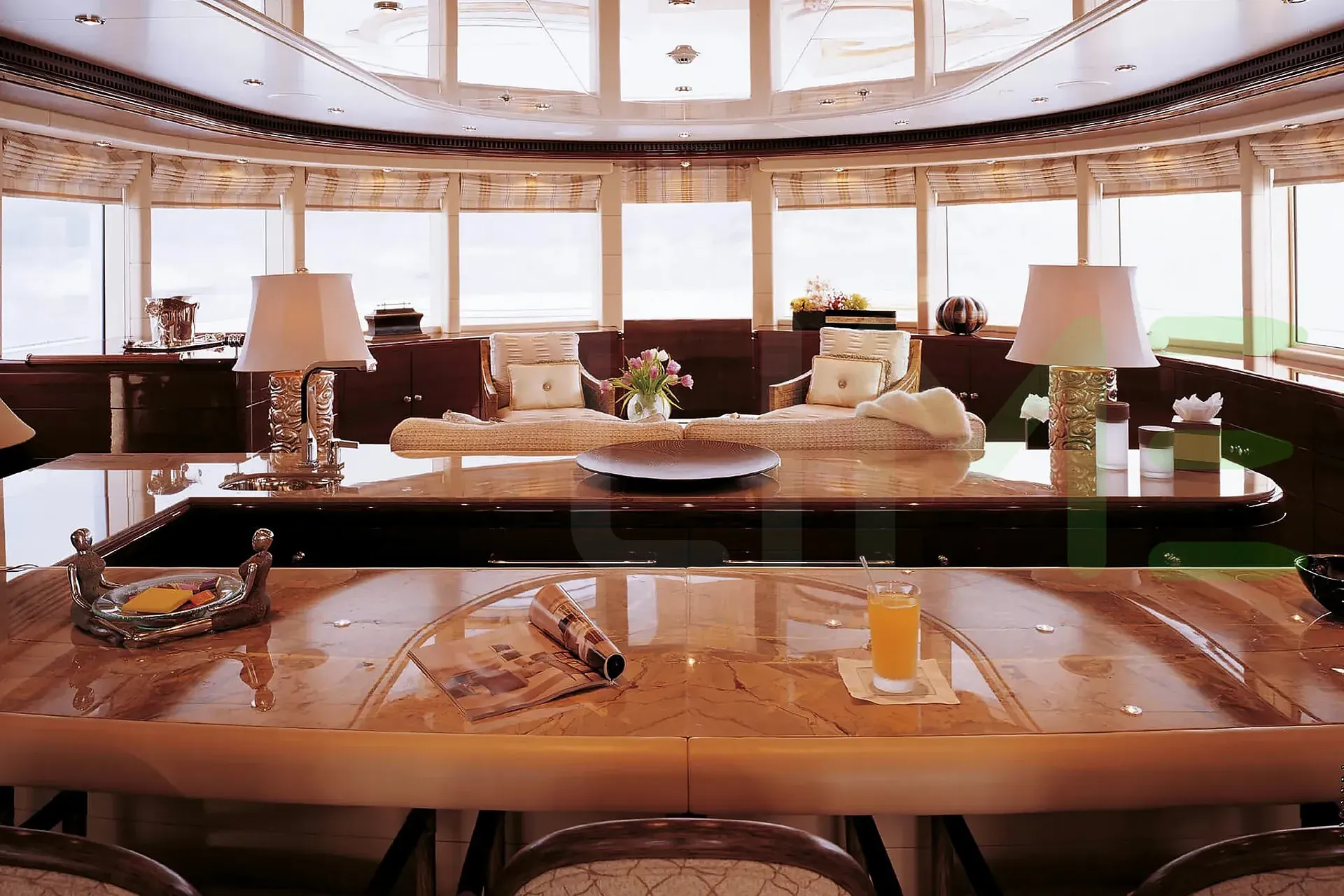 Enhanced by her steel full-displacement hull, and aluminium superstructure, a higher level of seaworthiness and comfort for those on board the C STAR yacht has been achieved. The visual appeal of the exterior is complimented by the rich color and distinctive grain patterns of teak decks that lend an air of sophistication to the yacht's appearance.