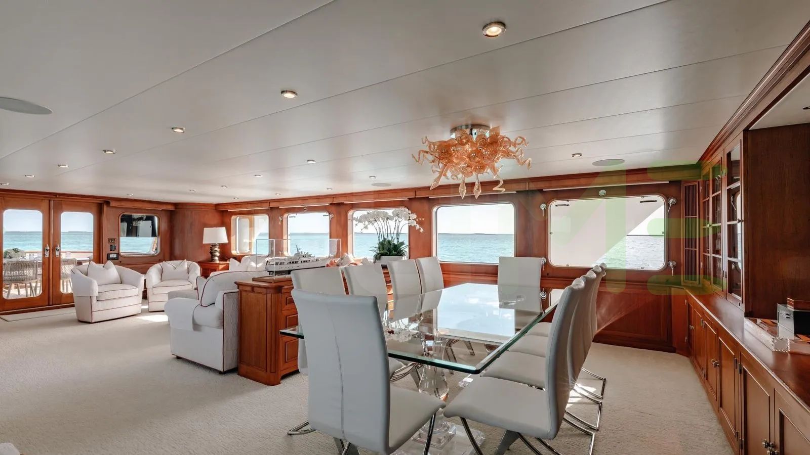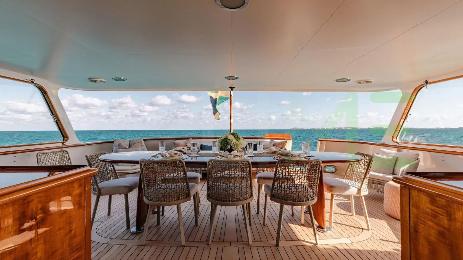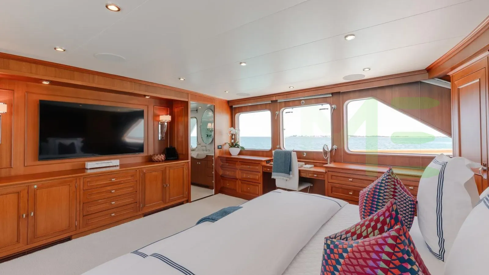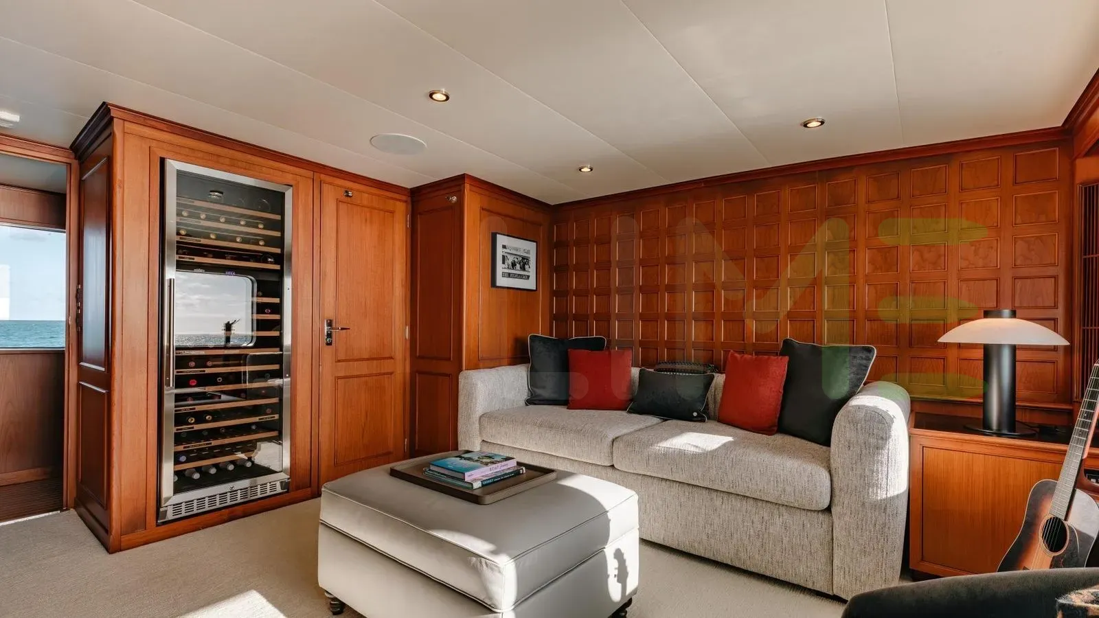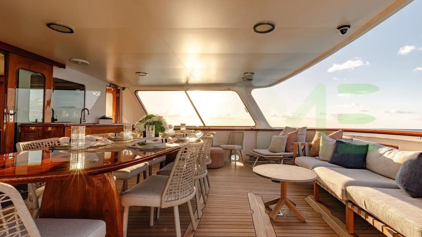 Enhanced by her steel full-displacement hull, and aluminium superstructure, a higher level of seaworthiness and comfort for those on board the CALYPSO yacht for sale has been achieved. The visual appeal of the exterior is complimented by the rich color and distinctive grain patterns of teak decks that lend an air of sophistication to the yacht's appearance.