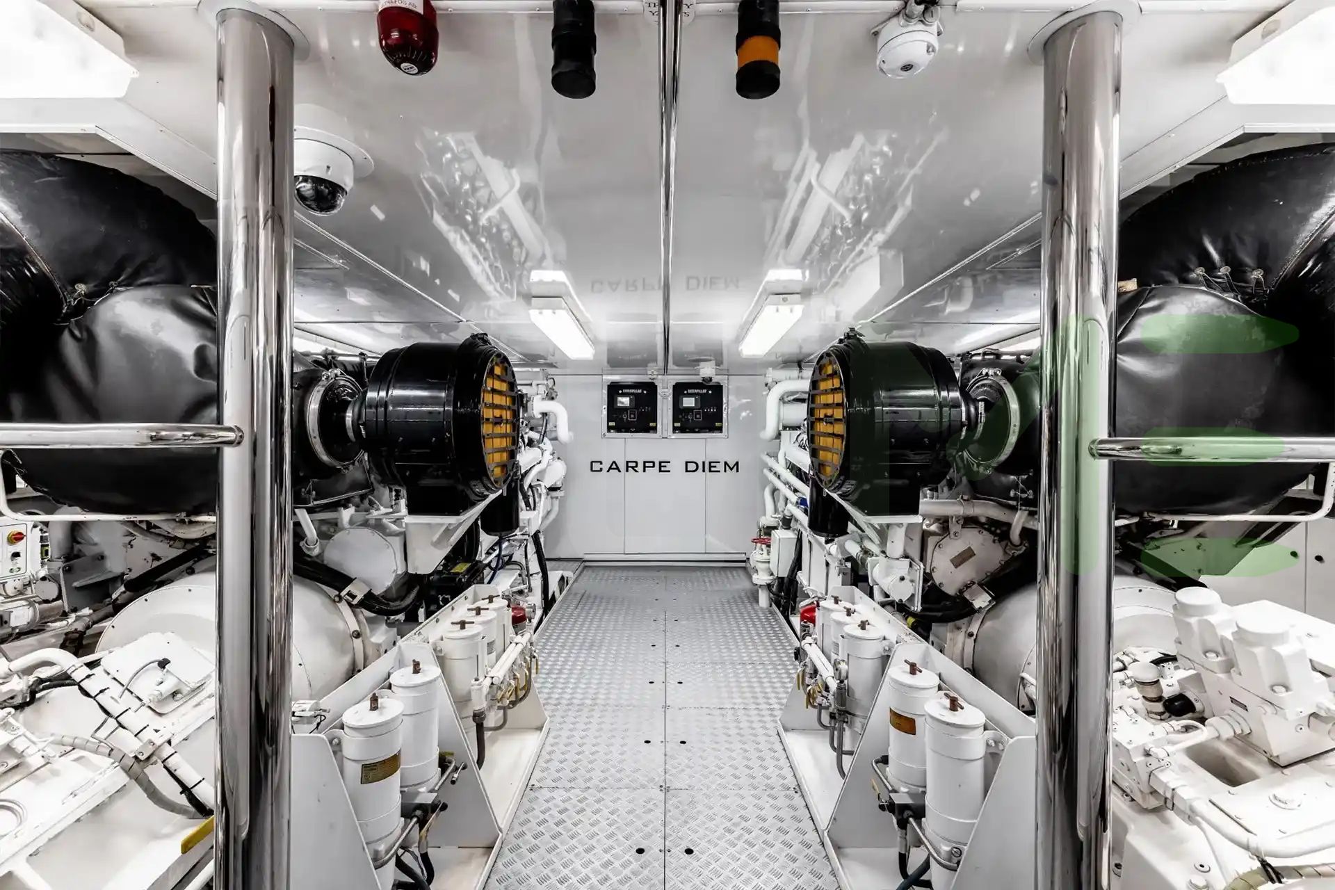 Powered by two Caterpillar main engines, each generating 1,641 horsepower, for a total combined output of 3,282 horsepower. Notably, the CARPE DIEM yacht is one of 2,656 yachts greater than 65’(19m) with Caterpillar engines.