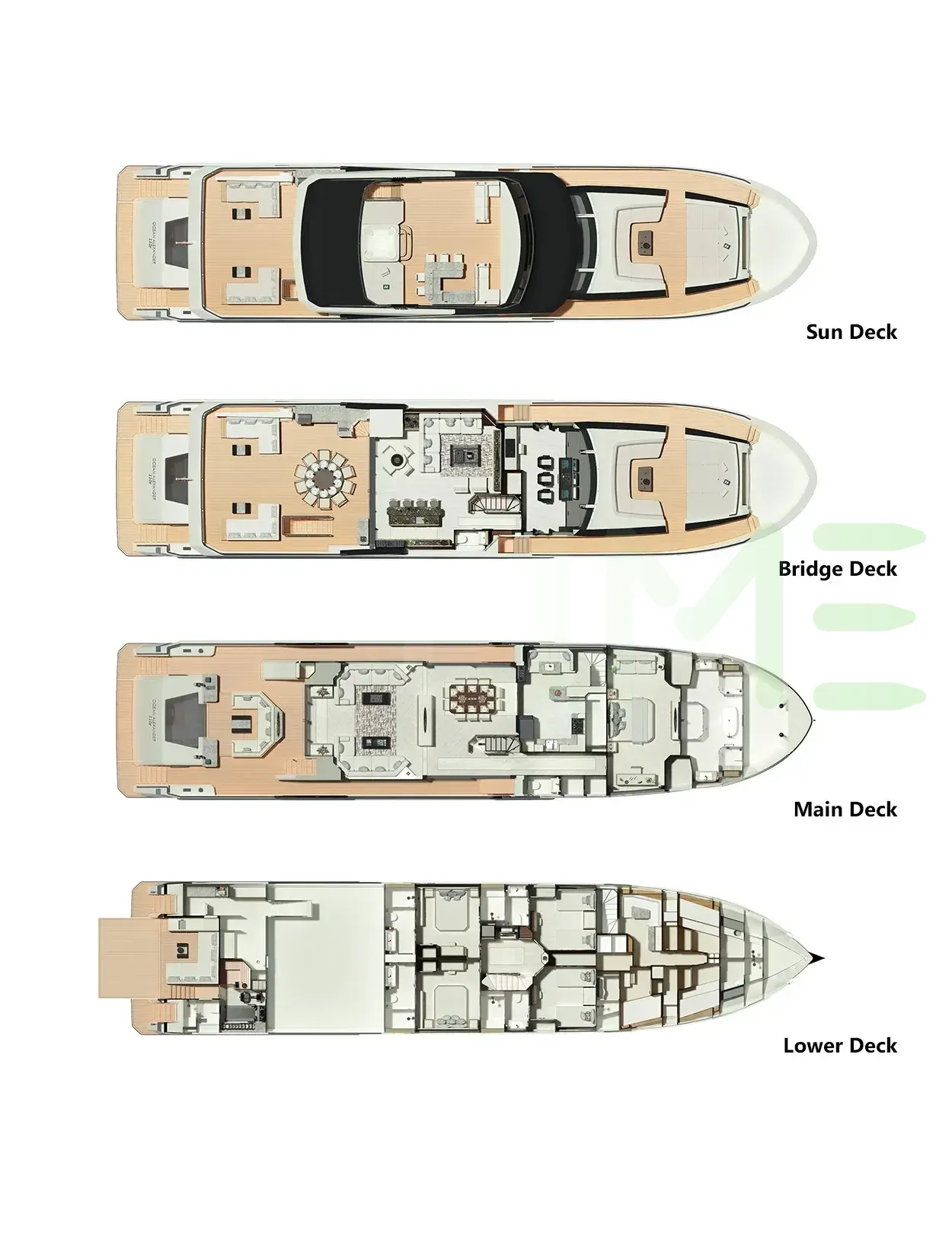 Request plans that include the layout of staterooms, guest areas, and outdoor spaces, as well as crew quarters and work areas.