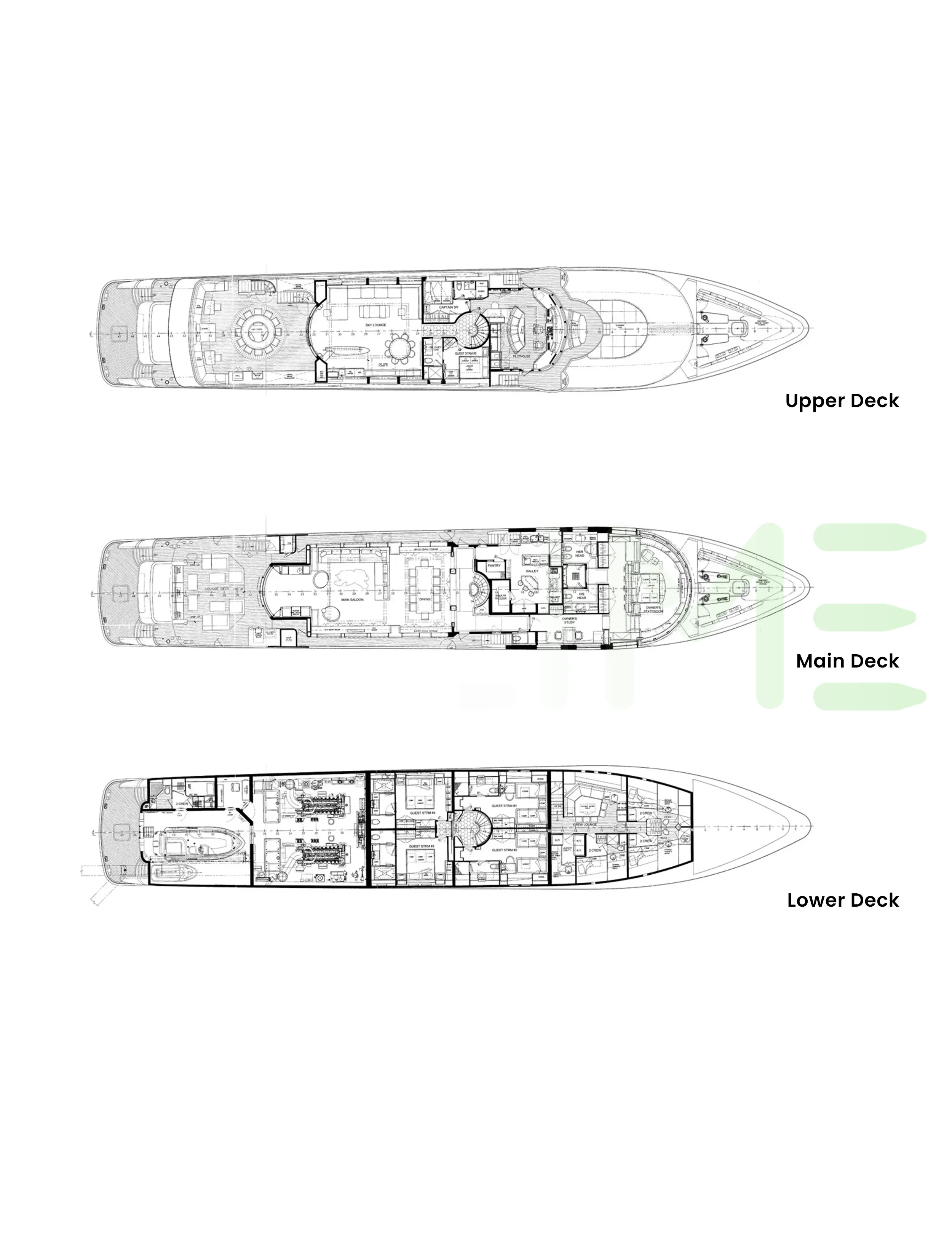 Request plans that include the layout of staterooms, guest areas, and outdoor spaces, as well as crew quarters and work areas.