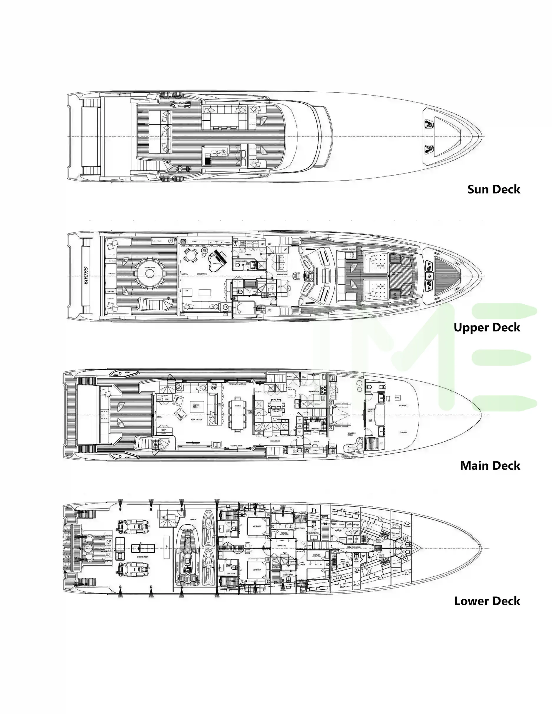 Request plans that include the layout of staterooms, guest areas, and outdoor spaces, as well as crew quarters and work areas.