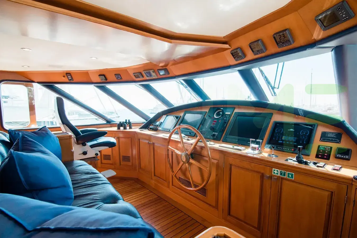CHARISMA is a full-displacement oceangoing mono-hull motoryacht, with a beam of 25' 10" (7.87 meters), offering stability and comfort during blue water open ocean navigation, including near coastal and inland cruising. Her full-displacement hull shape and draft of 8' 6" (2.6 meters) further contribute to a yacht with a longer range, stowage, and a smooth sailing experience, making her ideal for extended journeys and global travel.