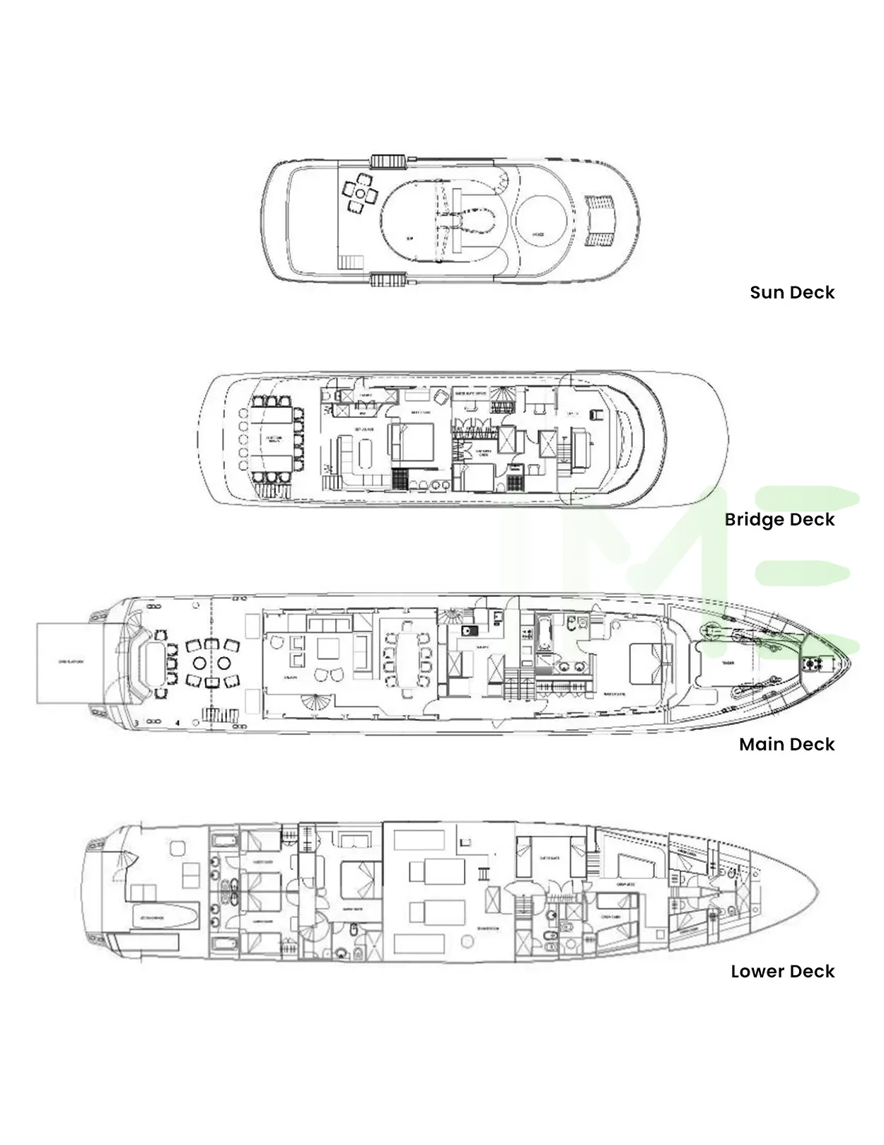 Request plans which include the layout of staterooms, guest areas, and outdoor spaces, as well as crew quarters and working spaces.