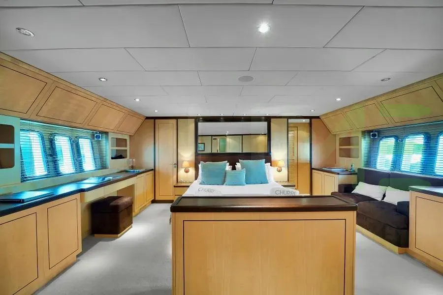 Up to 6 guests can be accommodated on board the yacht CHURRI in 3 staterooms. CHURRI also includes accommodations for 3 crew members, including the yacht’s captain. Whether you envision private escapes or unforgettable voyages, you're invited to discover a world where elegance meets adventure.