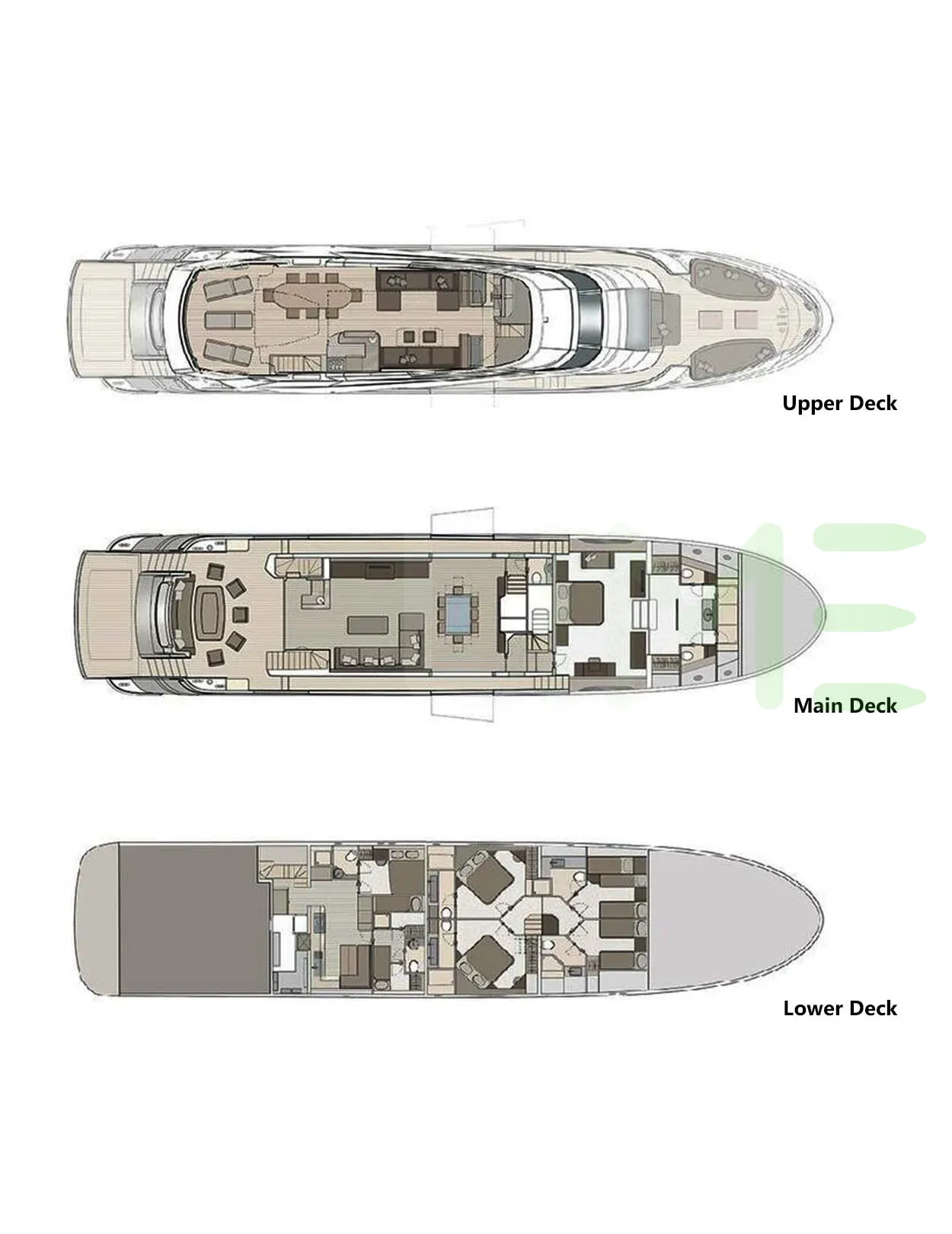 Request plans that include the layout of staterooms, guest areas, and outdoor spaces, as well as crew quarters and work areas.