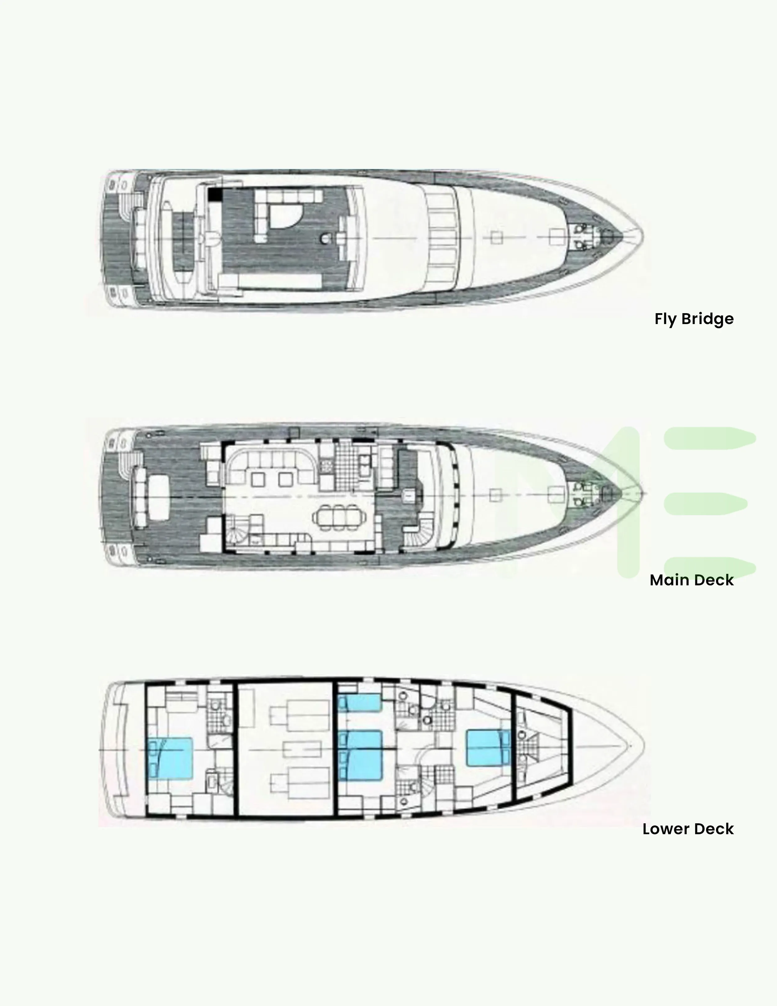 Request plans that include the layout of staterooms, guest areas, and outdoor spaces, as well as crew quarters and work areas.