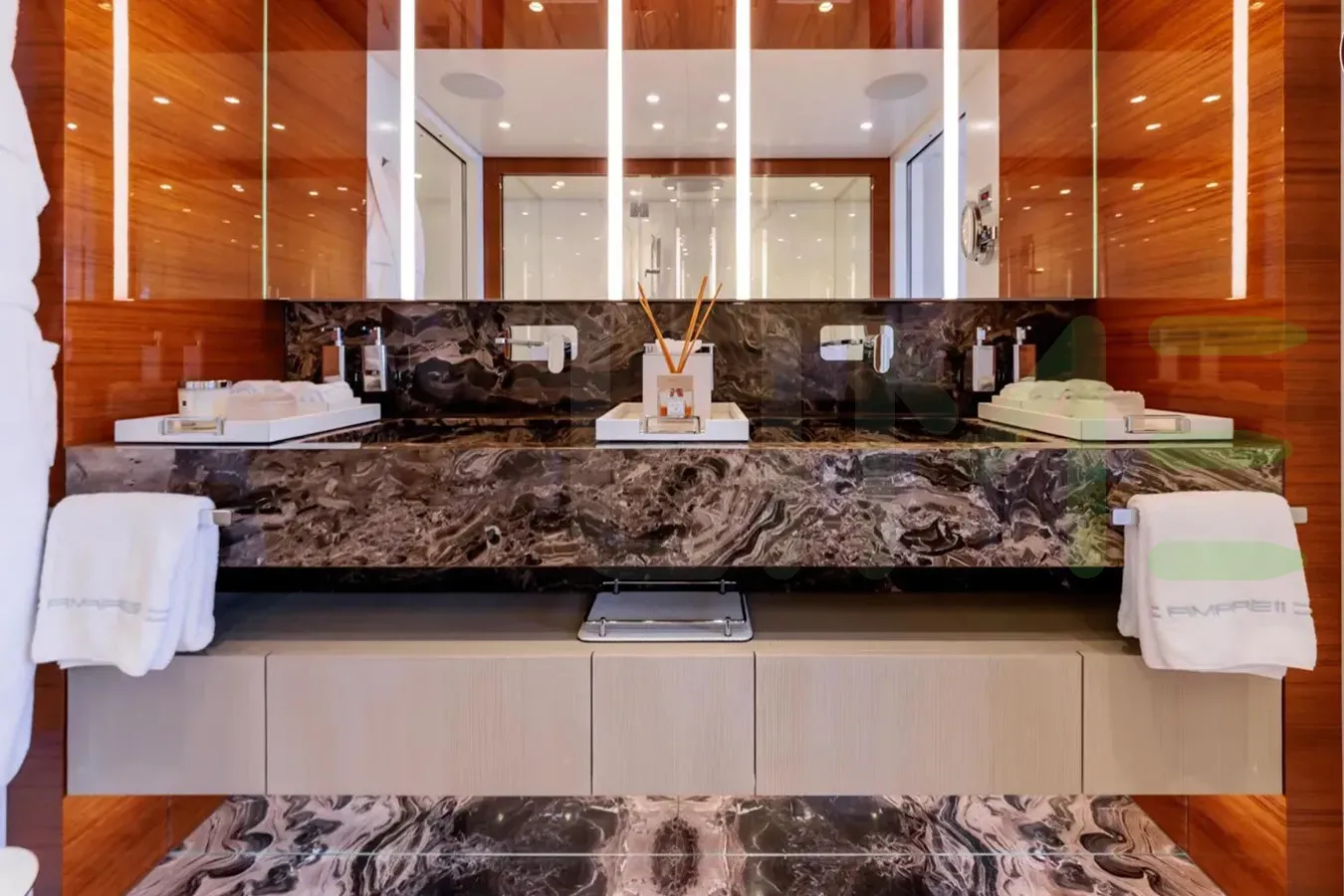 Her features include sauna, beach club, gym, WiFi and air conditioning.