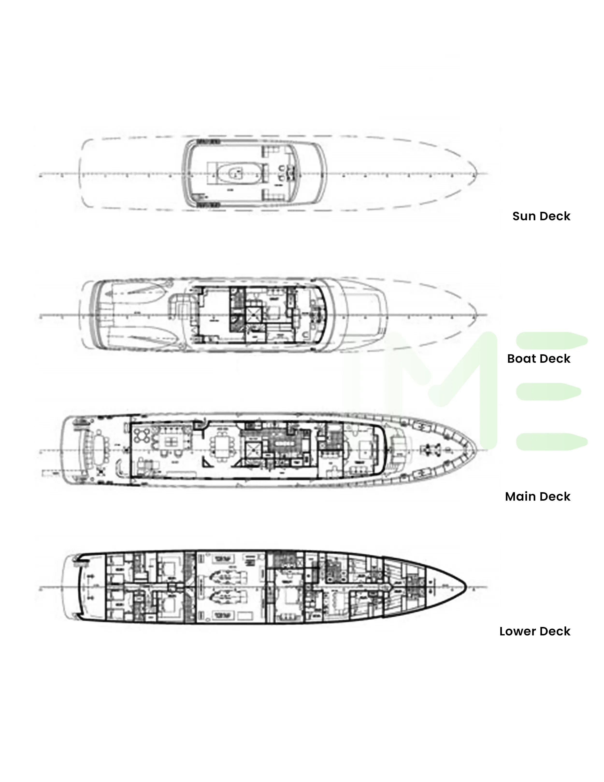 Request plans that include the layout of staterooms, guest areas, and outdoor spaces, as well as crew quarters and work areas.