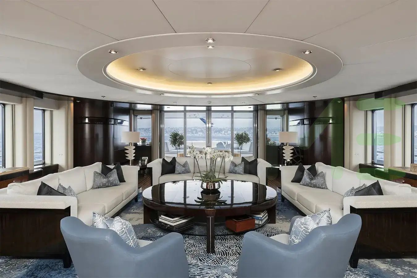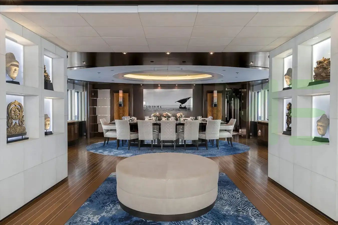 DREAM is a full-displacement oceangoing mono-hull motoryacht, with a beam of 35' 1" (10.7 meters), offering stability and comfort during blue water open ocean navigation, including near coastal and inland cruising. Her full-displacement hull shape and draft of 11' 6" (3.5 meters) further contribute to a yacht with a longer range, stowage, and a smooth sailing experience, making her ideal for extended journeys and global travel.