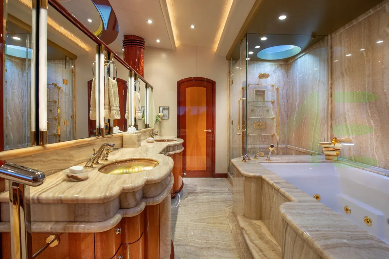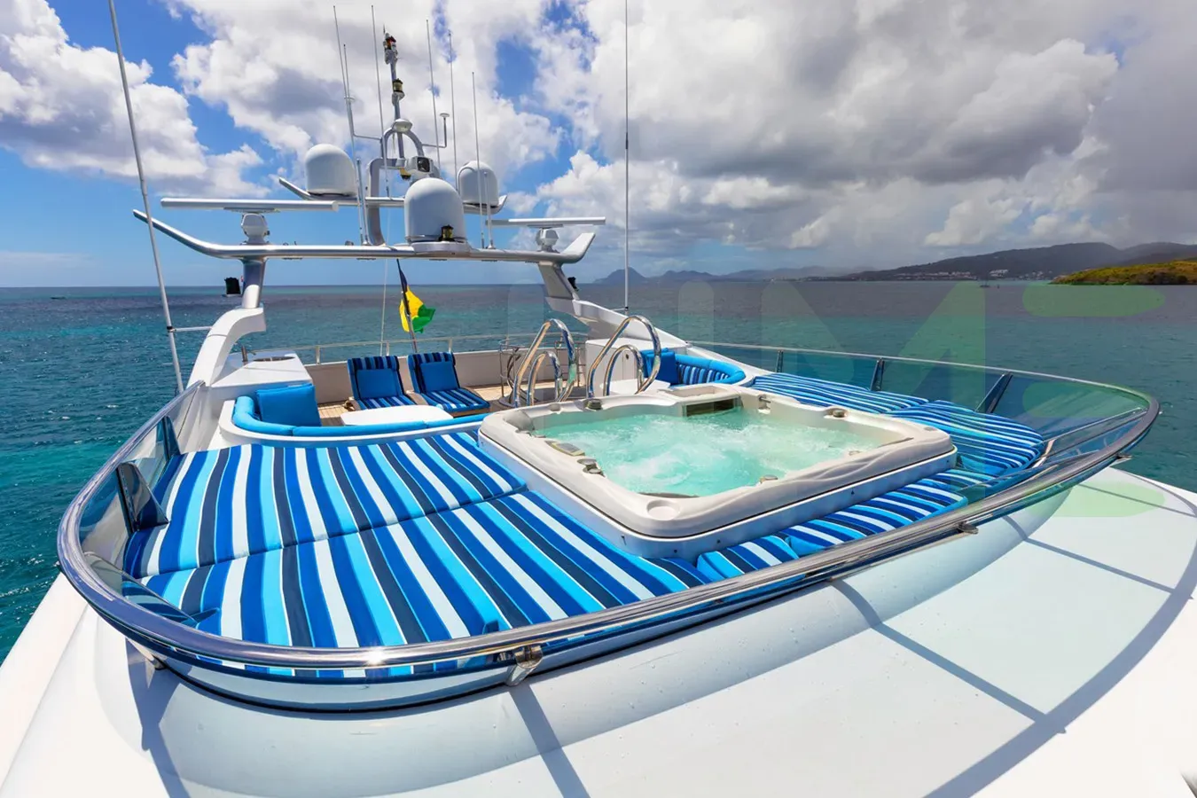 Her features include an elevator, deck jacuzzi, WiFi and air conditioning.