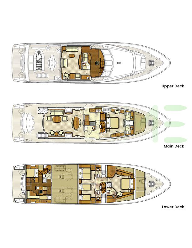 Request plans that include the layout of staterooms, guest areas, and outdoor spaces, as well as crew quarters and work areas.