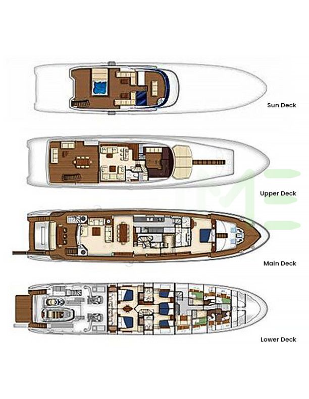 Request plans that include the layout of staterooms, guest areas, and outdoor spaces, as well as crew quarters and work areas.