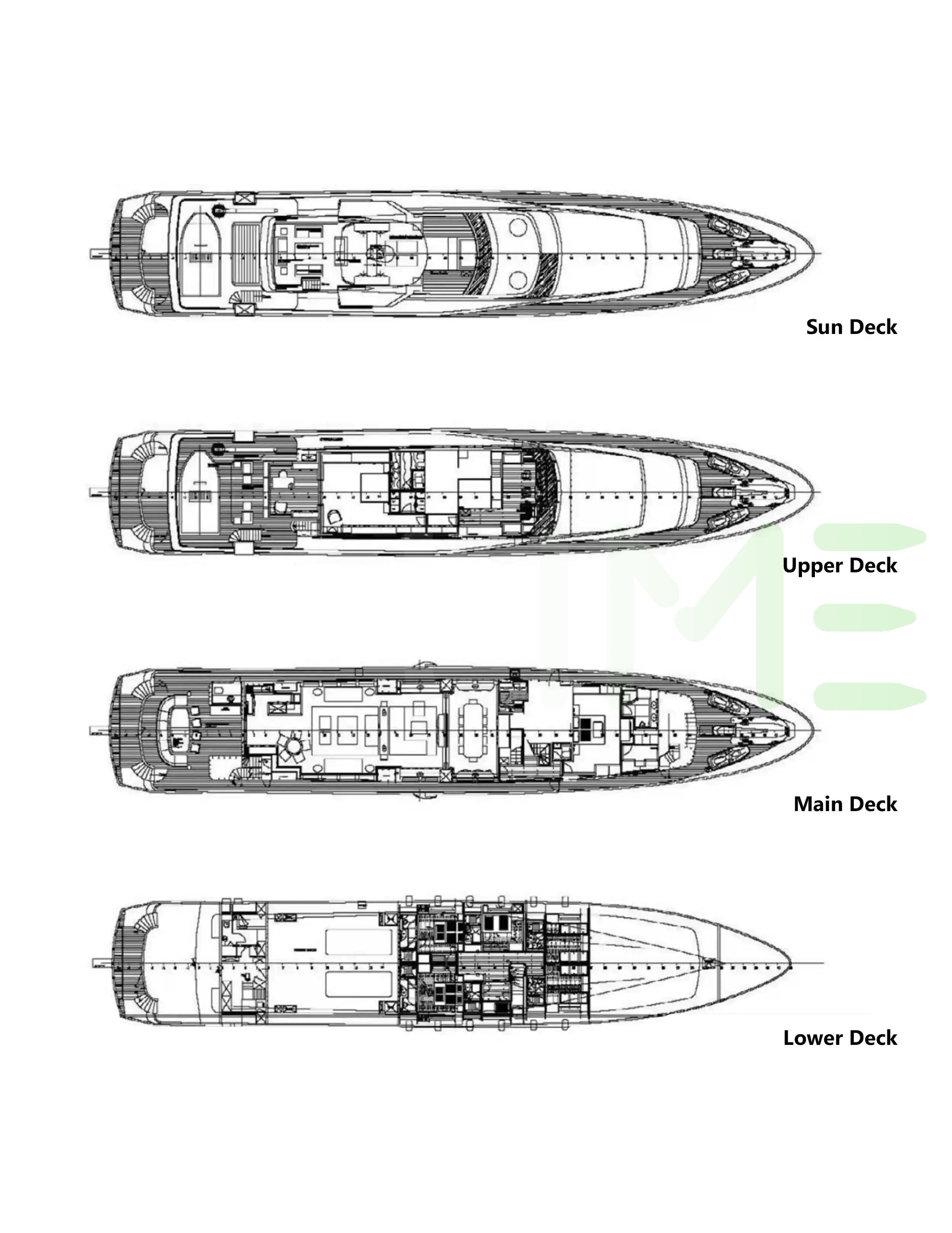 Request plans that include the layout of staterooms, guest areas, and outdoor spaces, as well as crew quarters and work areas.