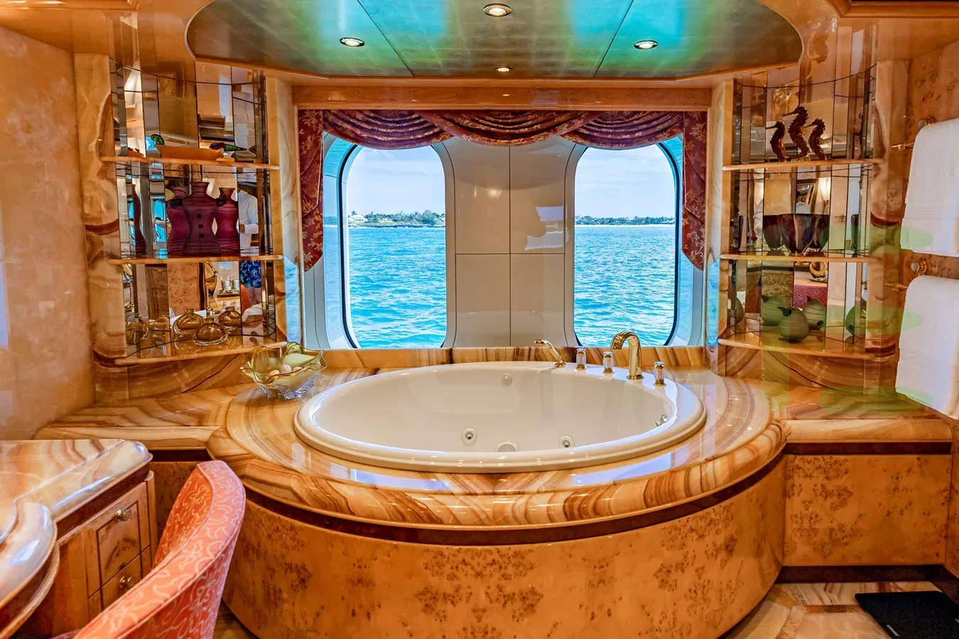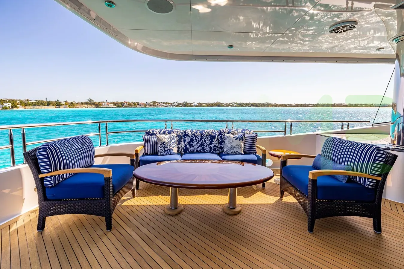 ELIS ET MAR is a semi-displacement mono-hull luxury motoryacht, with a beam of 33' 6" (10.2 meters), offering stability and comfort during near coastal and inland cruising. The semi-displacement hull shape and draft of 7' 10" (2.4 meters) further enhances her speed, allowing quick sprints from port to port, making her ideal for visiting the maximum number of destinations on your itinerary in the shortest period.