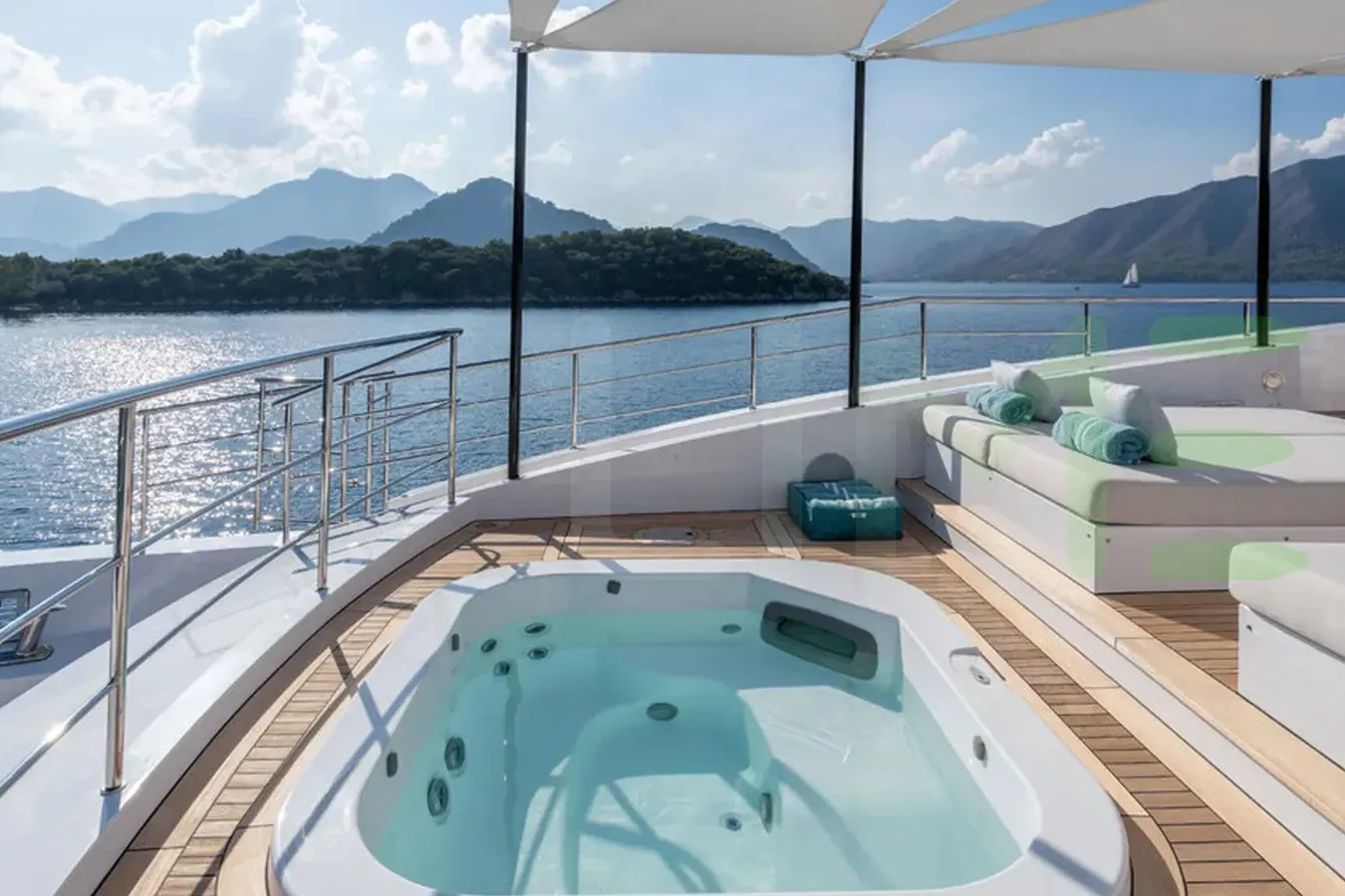 Her features include beach club, deck jacuzzi, WiFi and air conditioning.