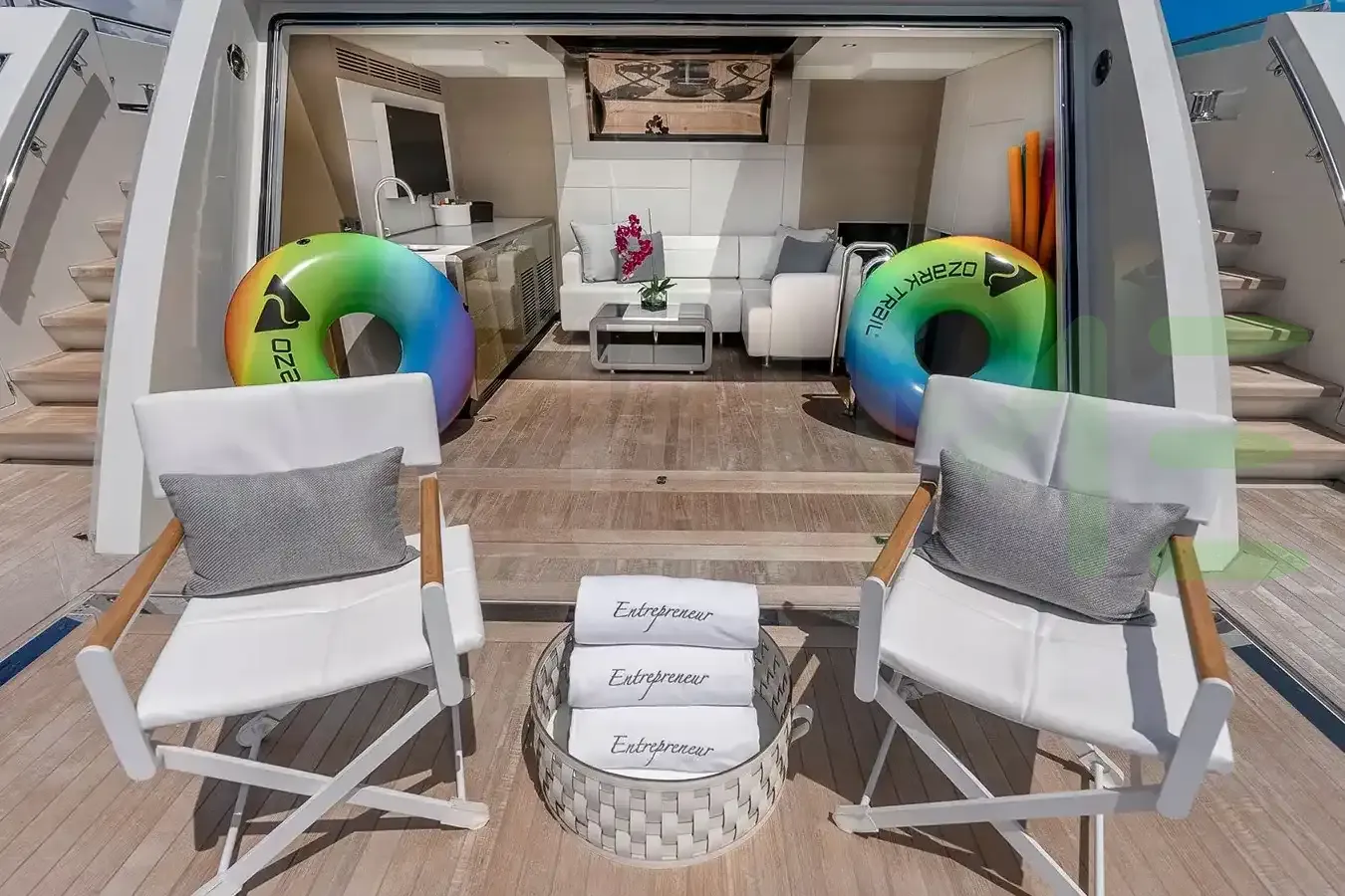 Up to 10 guests can be accommodated on board the yacht ENTREPRENEUR in 5 staterooms. ENTREPRENEUR also includes accommodations for 5 crew members, including the yacht’s captain. Whether you envision private escapes or unforgettable voyages, you're invited to discover a world where elegance meets adventure.