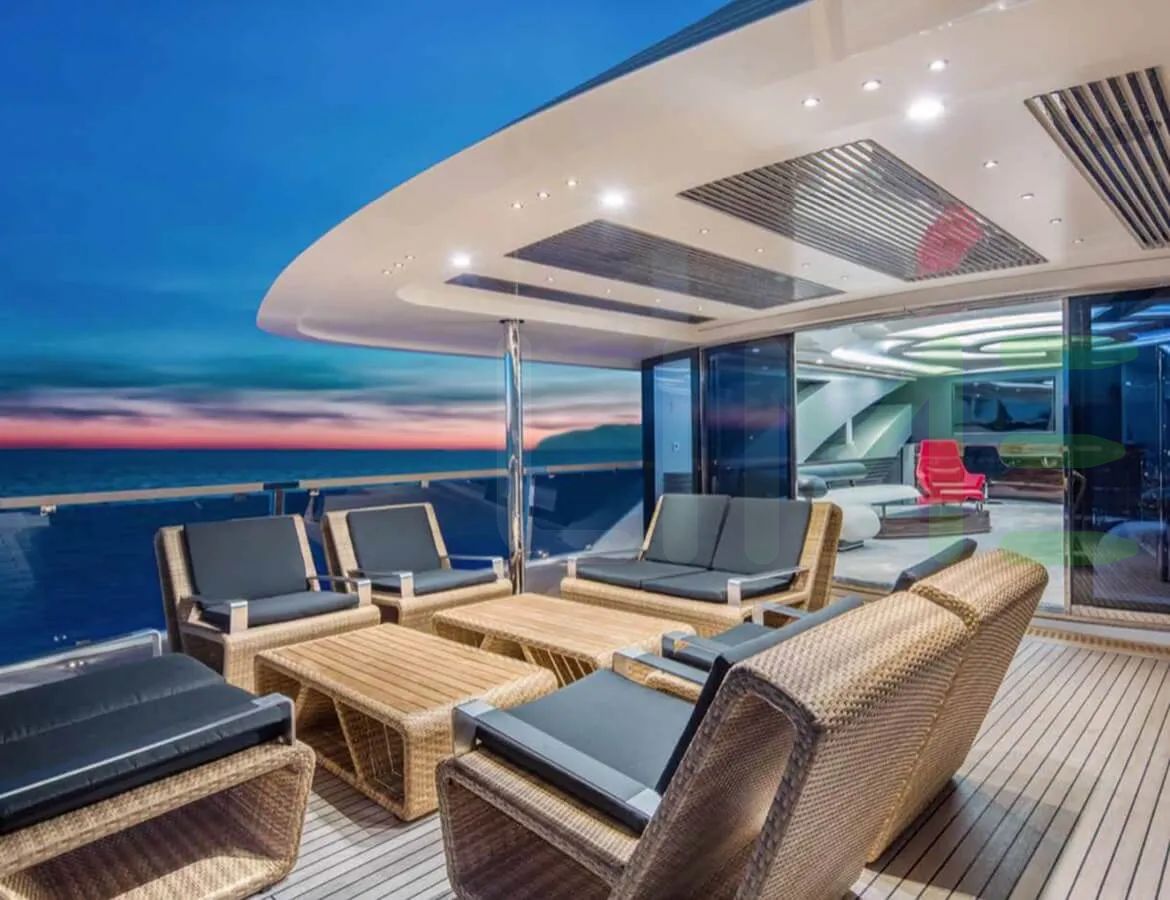 Enhanced by her steel full-displacement hull, and aluminium superstructure, a higher level of seaworthiness and comfort for those on board the EUPHORIA II yacht for sale has been achieved. The visual appeal of the exterior is complimented by the rich color and distinctive grain patterns of decks that lend an air of sophistication to the yacht's appearance.