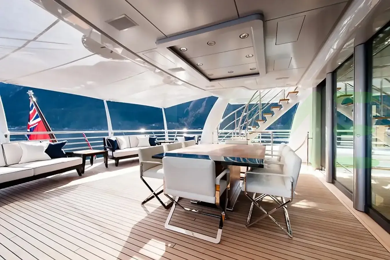 Enhanced by her steel full-displacement hull, and aluminium superstructure, a higher level of seaworthiness and comfort for those on board the EVENT yacht has been achieved. The visual appeal of the exterior is complimented by the rich color and distinctive grain patterns of teak decks that lend an air of sophistication to the yacht's appearance.