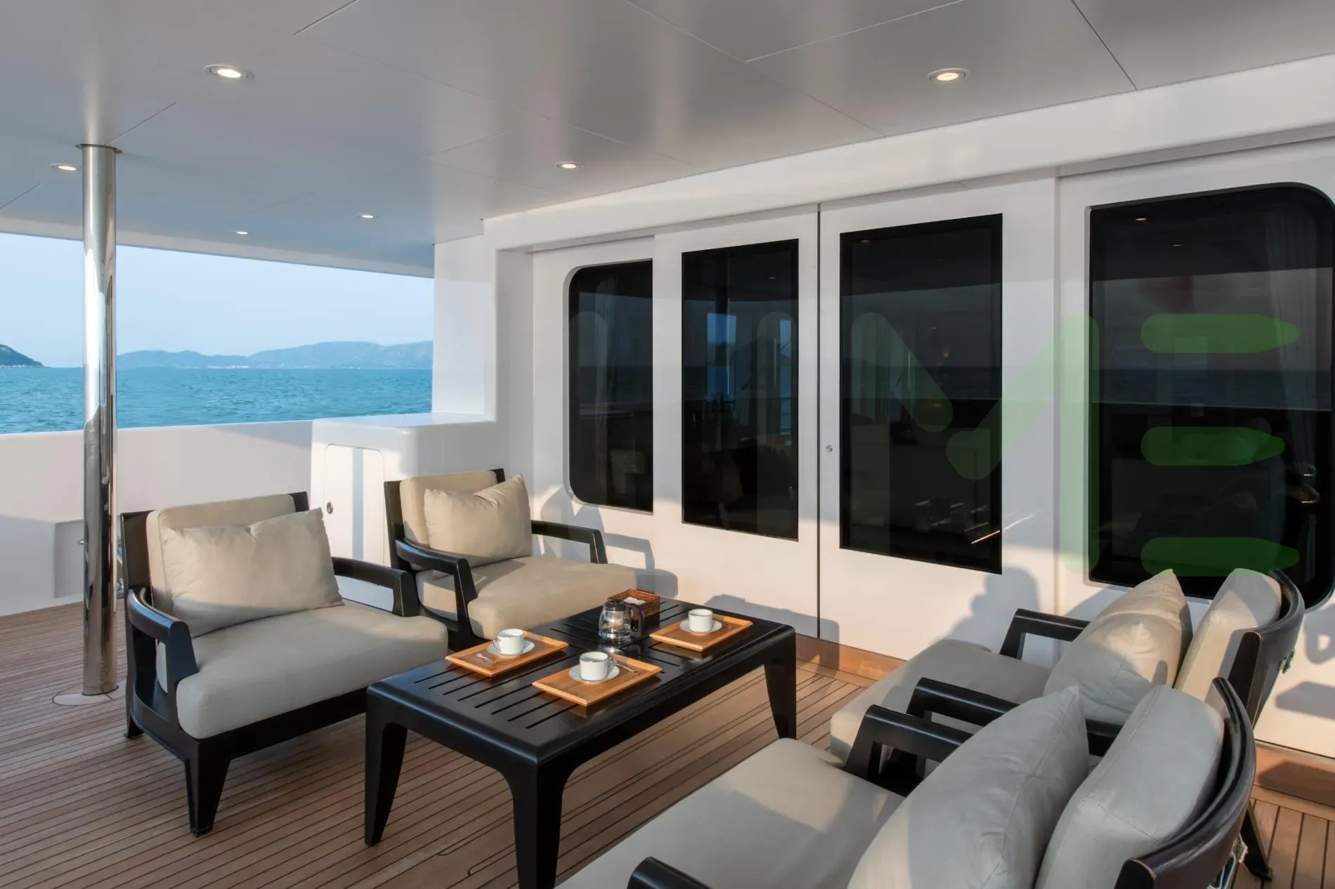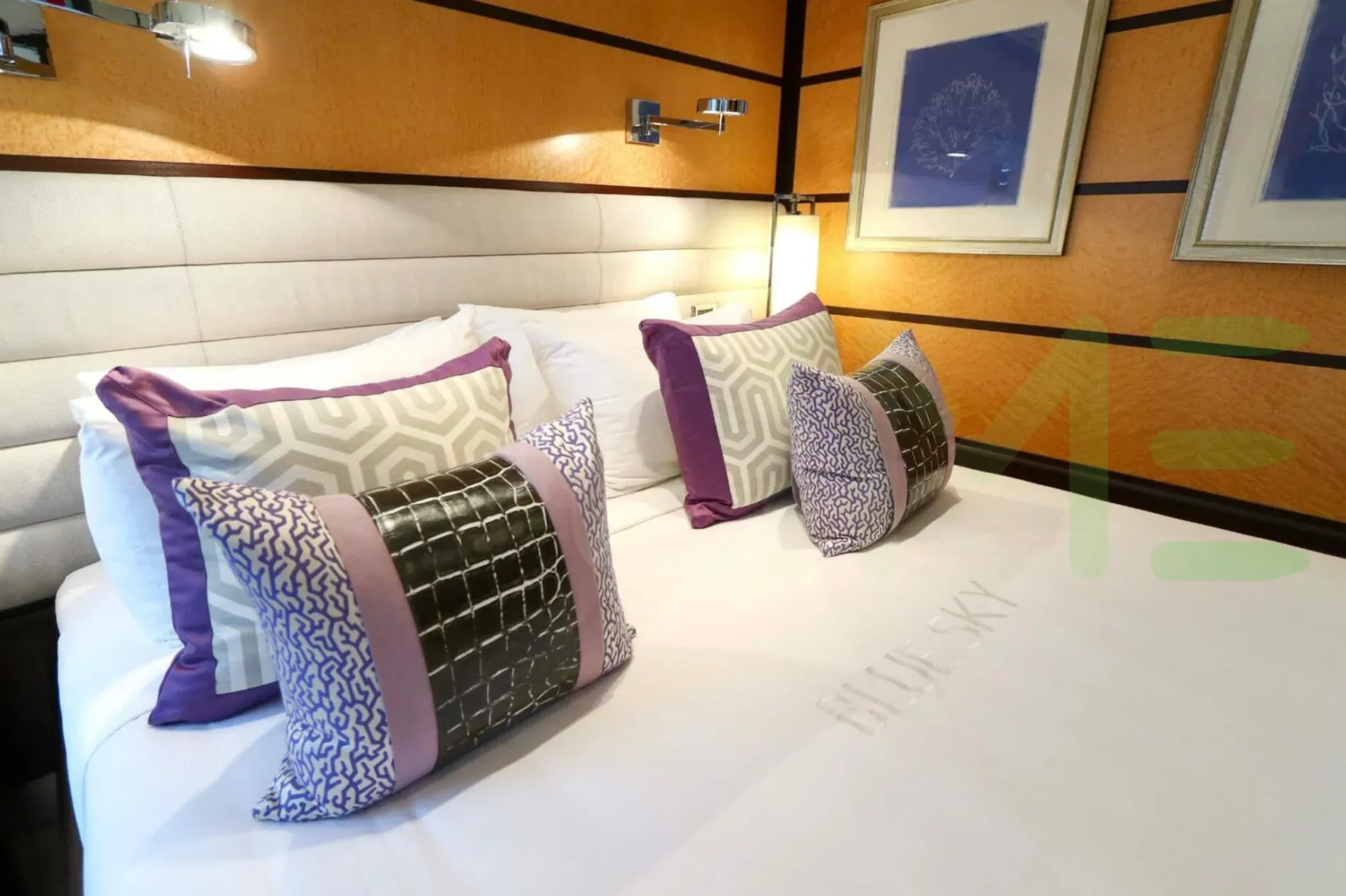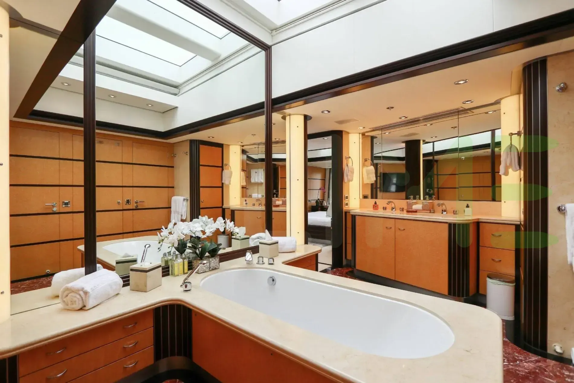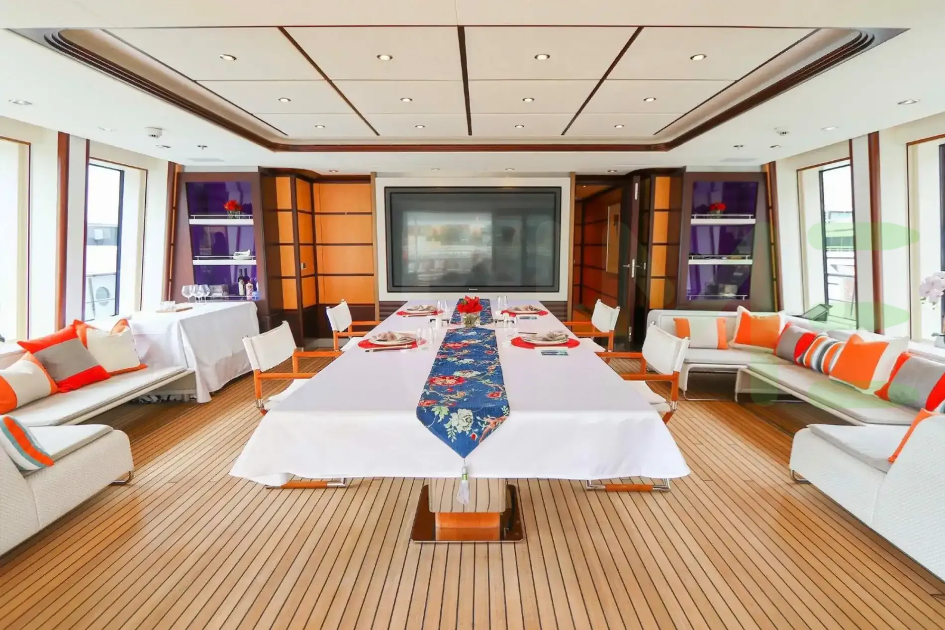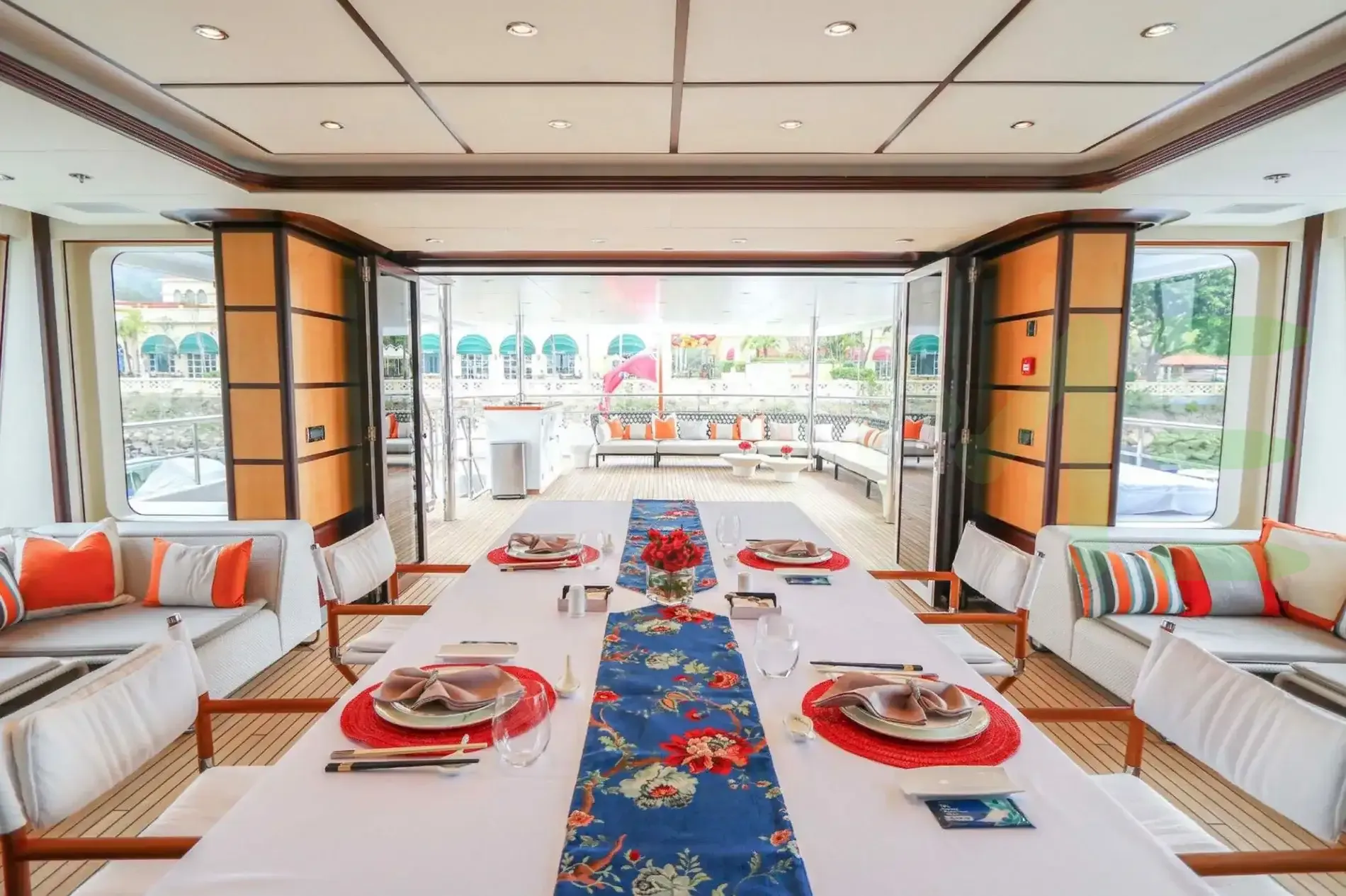 Her features include underwater lights, deck jacuzzi, WiFi and air conditioning.