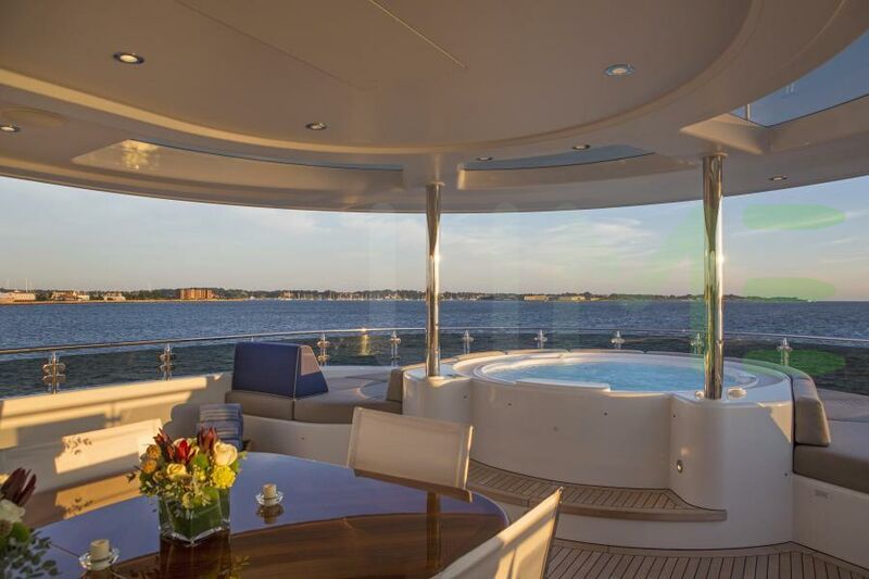 A charter on Far Niente is comfortable and convenient thanks to the provided amenities such as a state-of-the-art movie theatre for movie nights. Sit back with a glass of champagne in the deck jacuzzi.